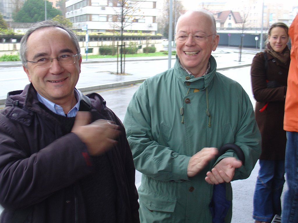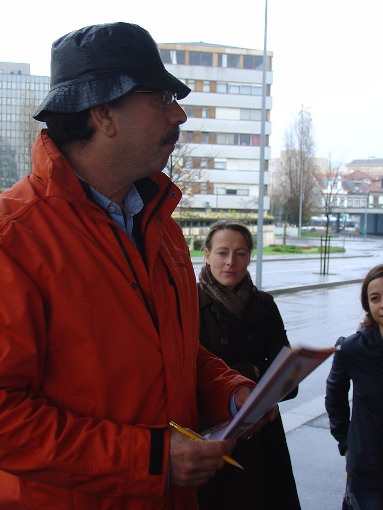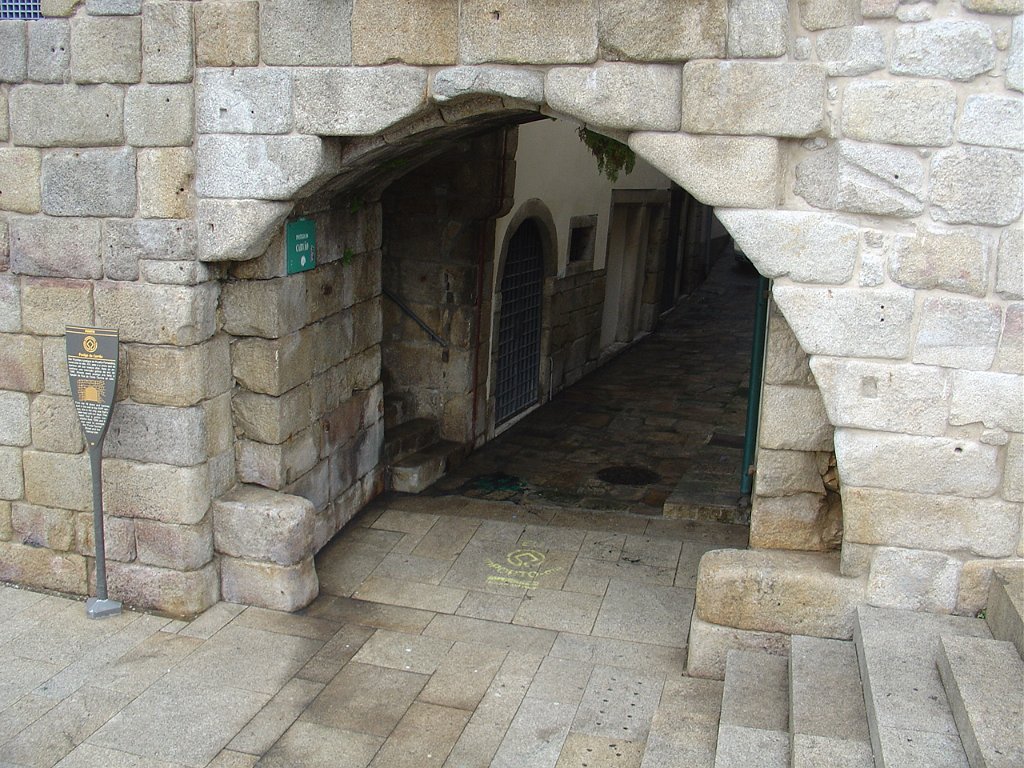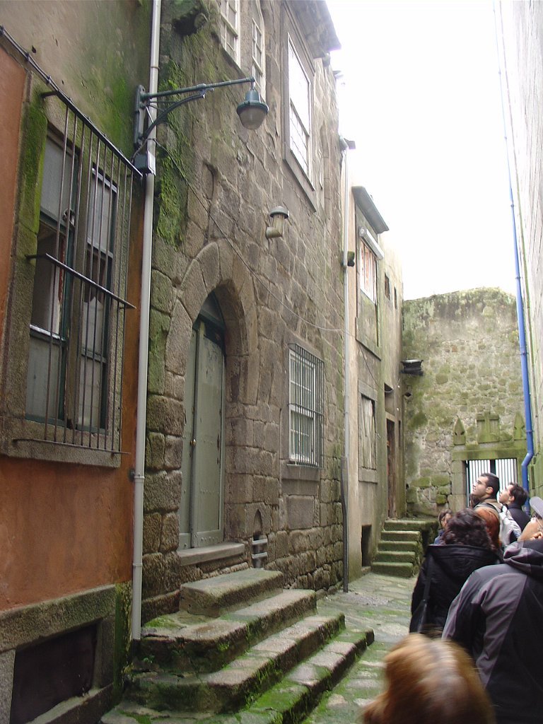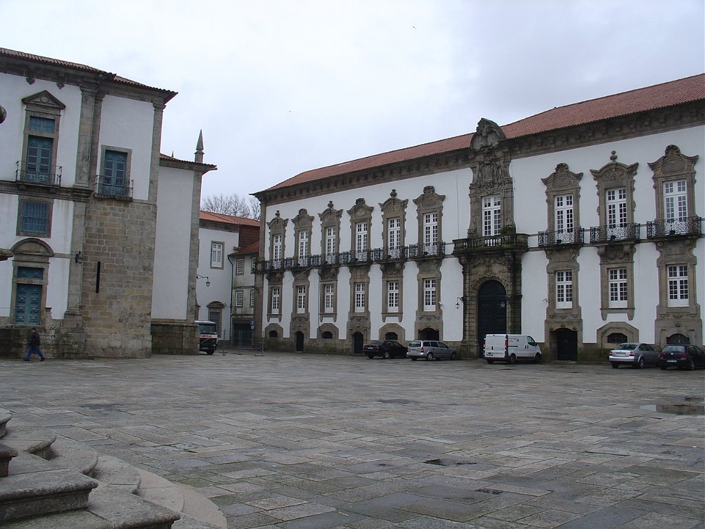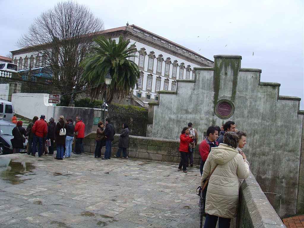 Abrigados na-e-à-pala do Souto Moura, os participantes ouviram algumas razões, explicações e conselhos sobre o programa previsto: desde logo a falta da habitual “folhinha”, não só por preguiça mas por receio que o tempo não permitisse cumprir o GUIÃO gizado e fosse preciso improvisar, falha que seria suprida por 3-guias-3 no terreno, cicerones autóctones habilitados a VER marcas inexistentes até, e outras tretas sobre trânsito-em-cidade e afins. Ligado o GPS do Castro Almeida, que além dos registos topográficos é o autor das notáveis fotografias (e etc.) que ilustram os nossos passeios – provedor-mor de um precioso arquivo de 10 anos - abertos os guarda-chuvas, seja oqDquiser ! e partimos.