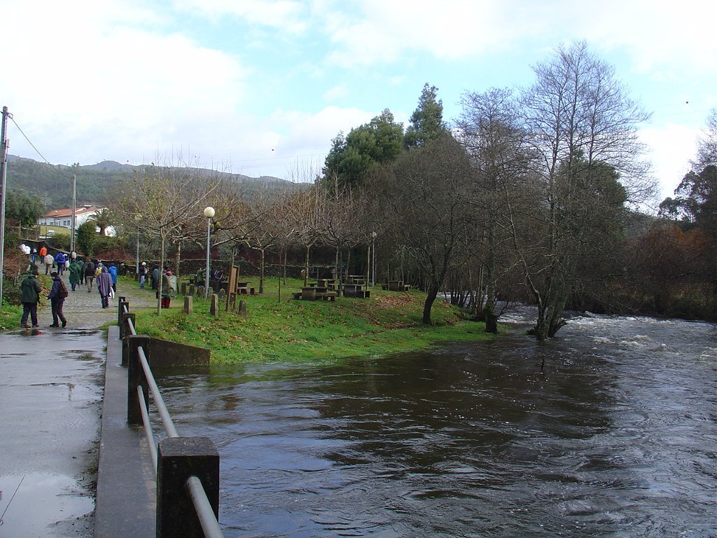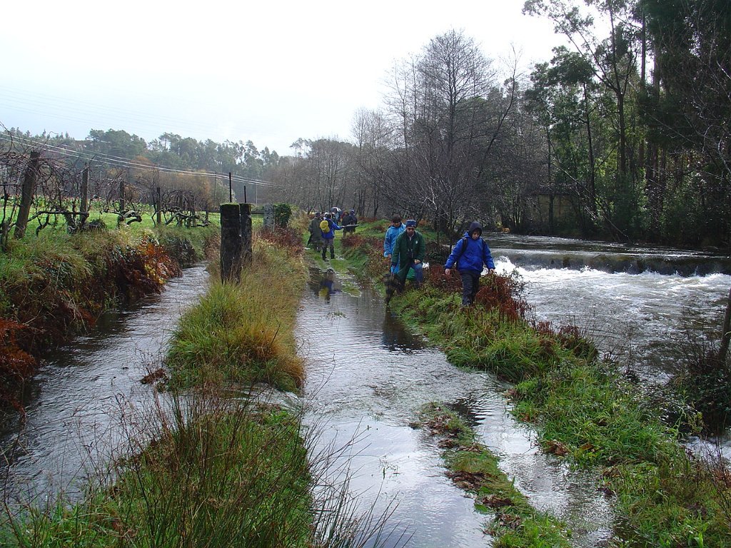 Regressamos pela margem alagada do Âncora, agora menos buliçoso, pois o declive é menor, mas mesmo assim muito para além do que nos tem habituado em outras circunstâncias, até à ponte de Cancela, onde tiramos a foto de grupo.