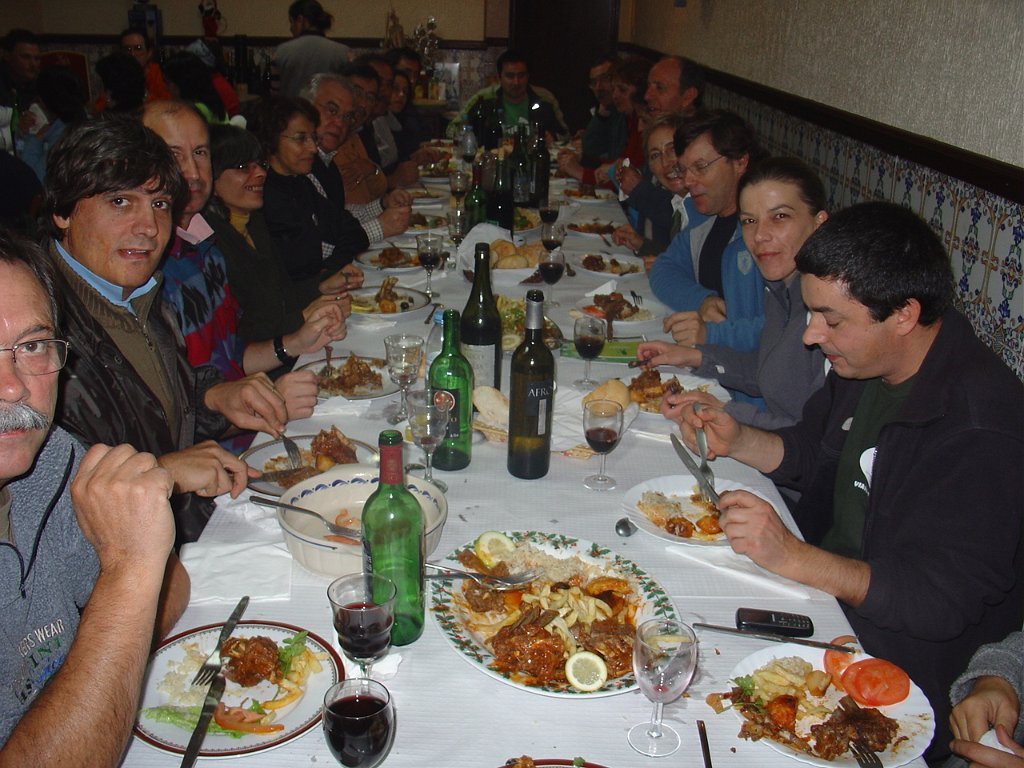 Não conhecia, mas fiquei cliente, pois desde as entradas, ao cabrito à Serra D’Arga, às sobremesas variadas, tudo estava muito bom, não tendo o animado grupo arredado posições senão pelas 16.00, depois de animadíssimo almoço, que serviu também para a distribuição do Crachá comemorativo dos dez anos do Grupo de Montanhismo de Viana do Castelo.