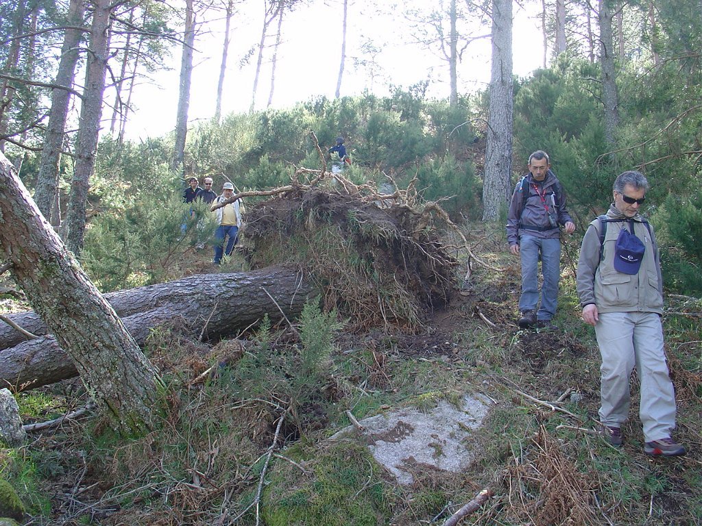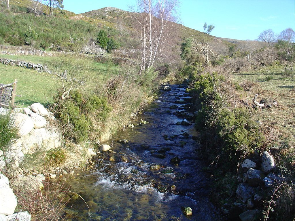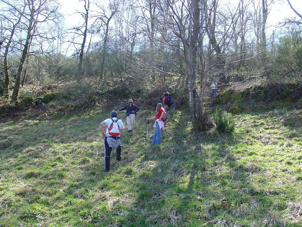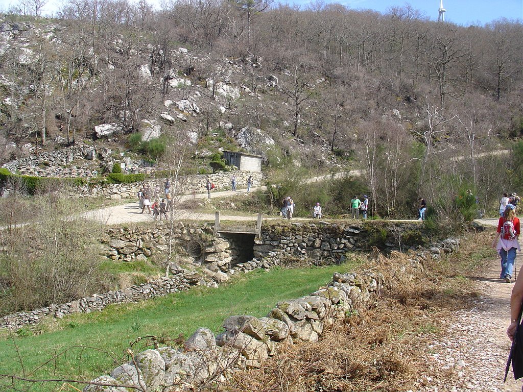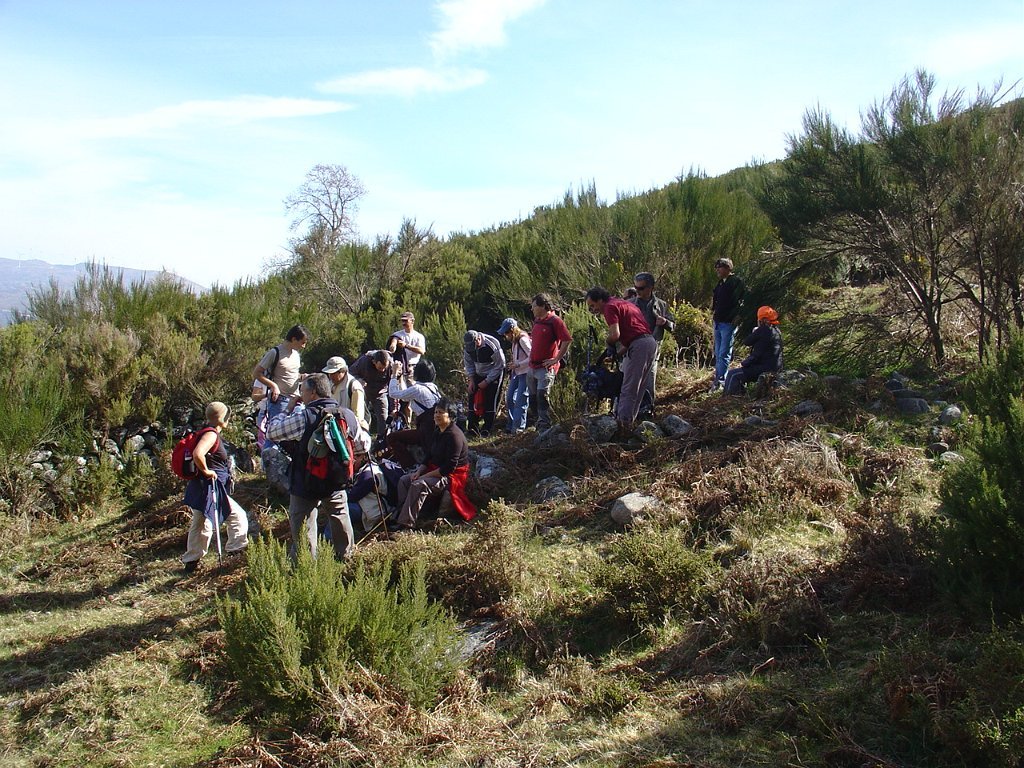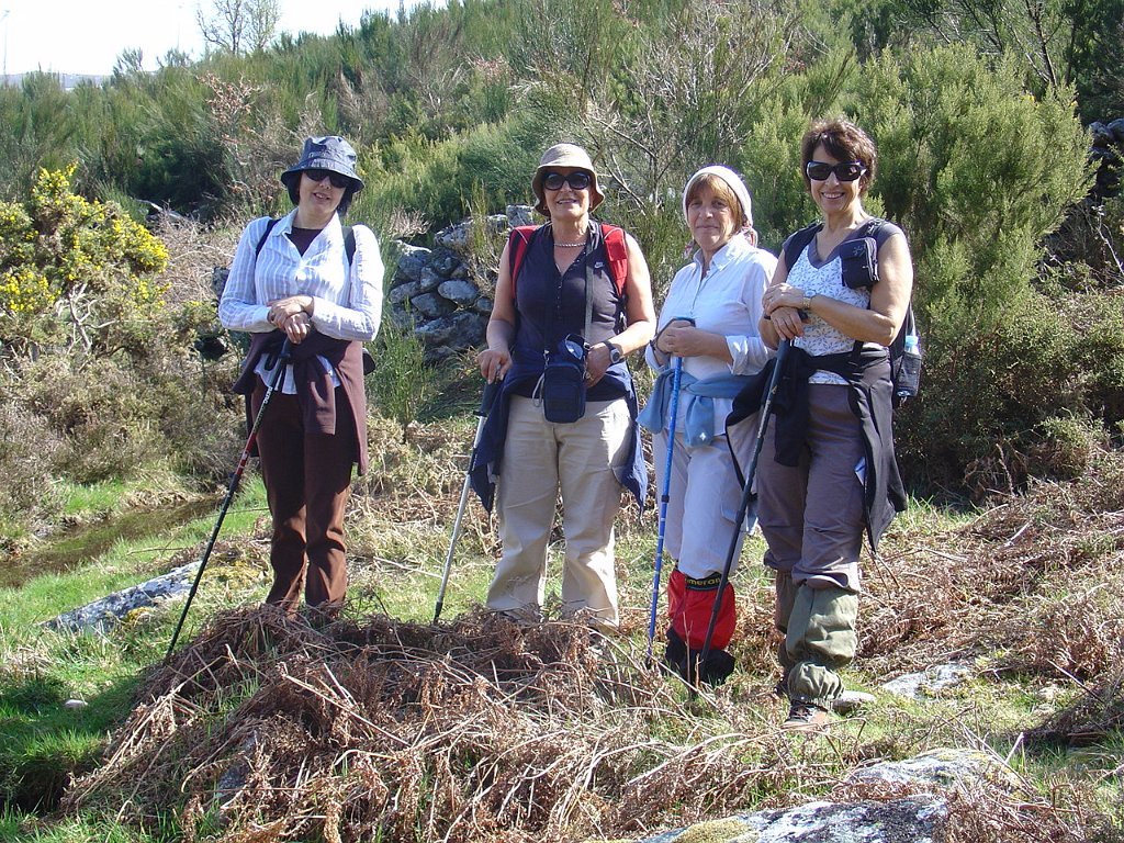 Chegados ao regato, um grupo seguiu sem dificuldades de maior perto do seu leito, mas os restante contornaram um muro de propriedade abandonada, que se transformou um pouco adiante numa muralha de silvas, que bloqueava totalmente os acessos, obrigando a algum trabalho de decote e poda e à ultrapassagem de alguns muros, até retornar ao ribeiro.