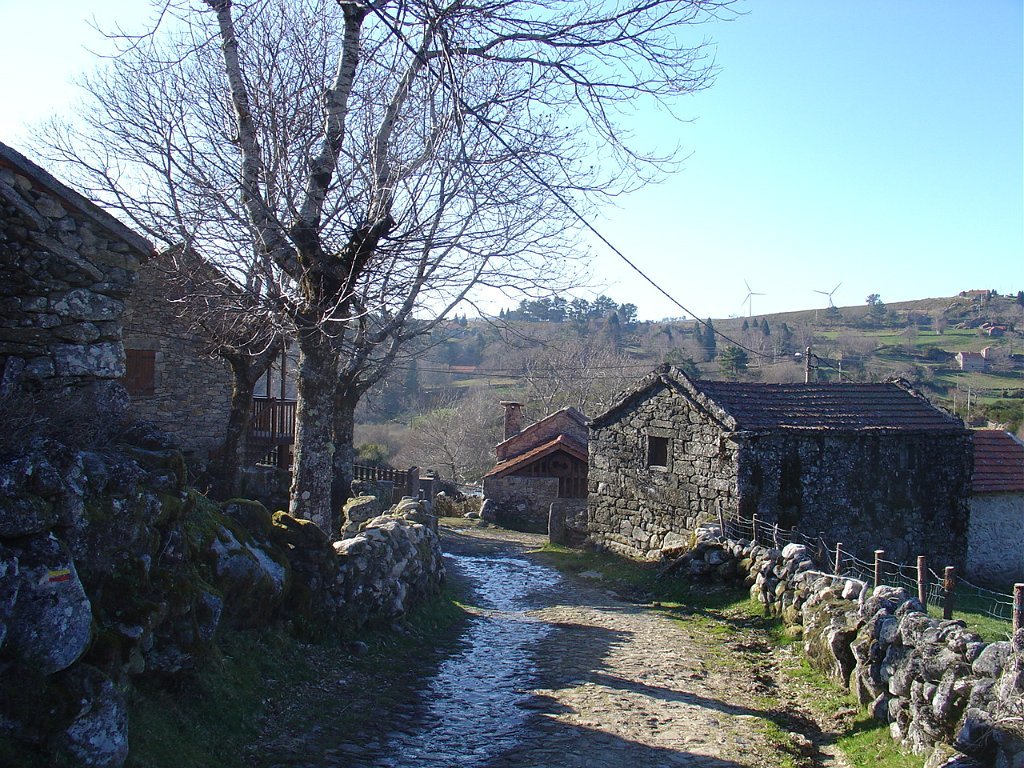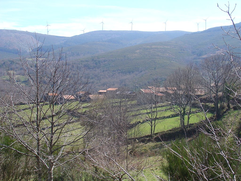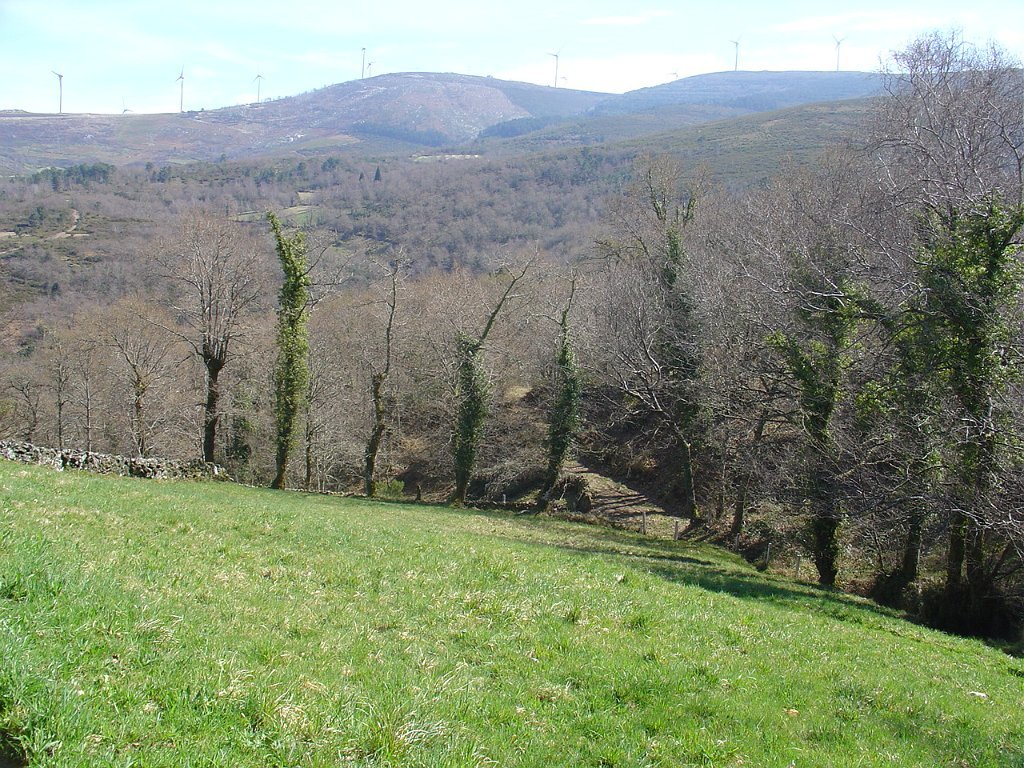 Daí tomamos um caminho paralelo ao do acesso às torres eólicas, iniciando pouco depois uma íngreme descida para a branda de Covelo.