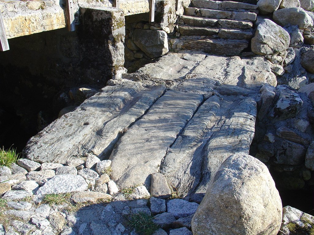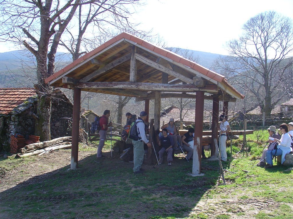 Contornada esta dificuldade chegamos à branda de Covelo, onde fizemos uma pausa num coberto que encimava interessante mesa composta por um enorme penedo de xisto.