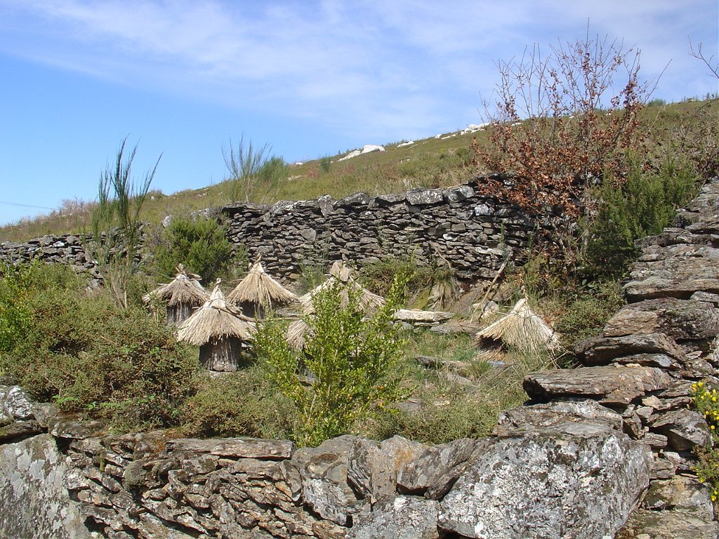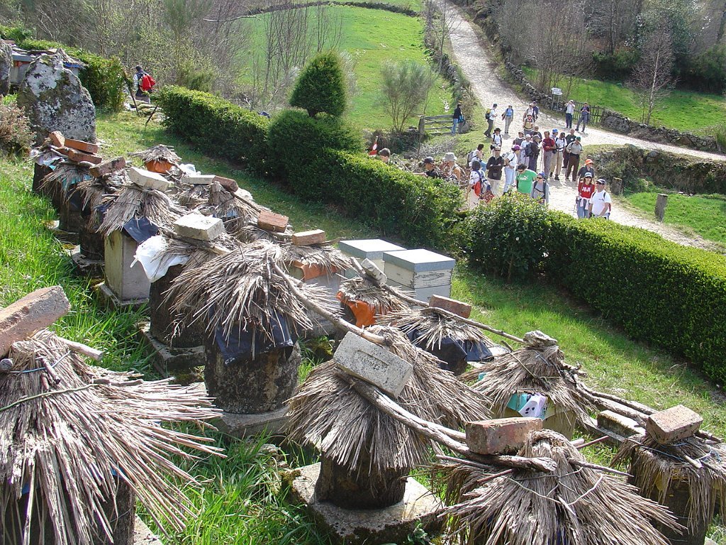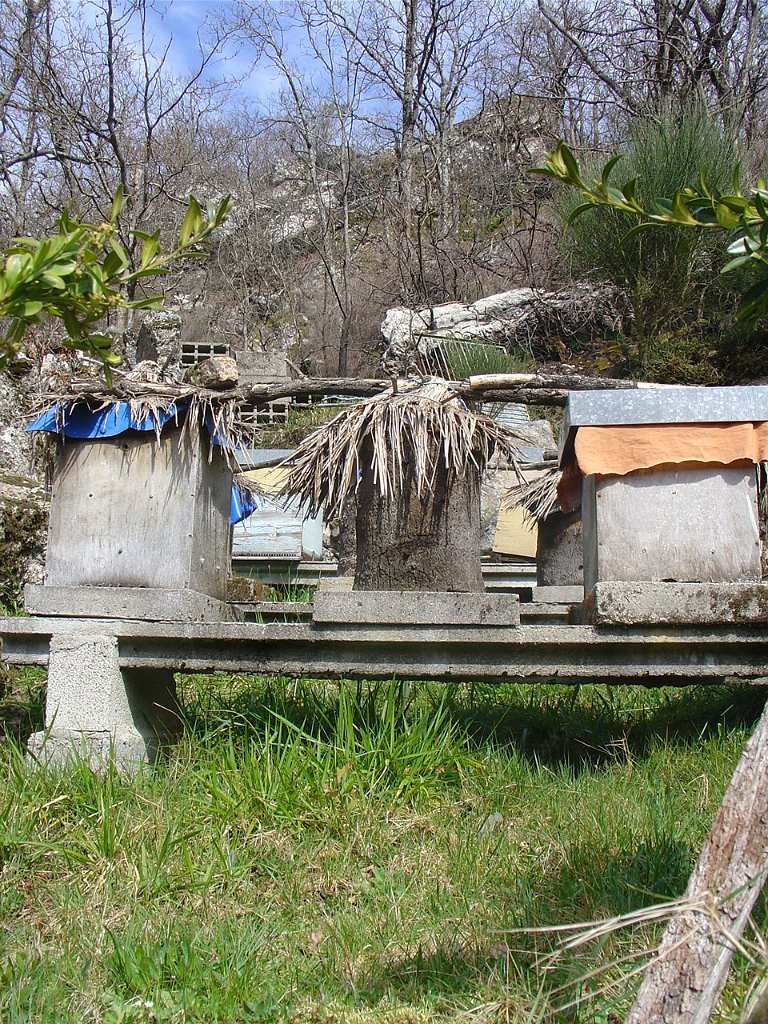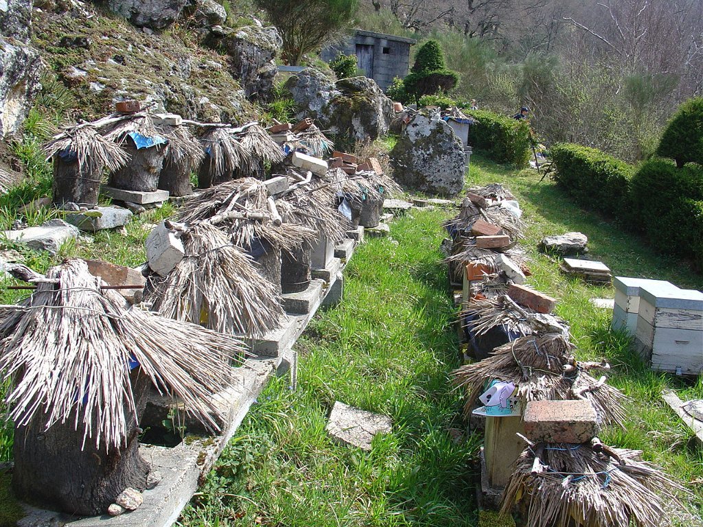Como o tempo avançava e a marcha ia lenta, tivemos que partir, continuando a descida, mas agora por caminho rural mais aceitável, na direcção da Corga da Granada, onde pudemos observar vários interessantes conjuntos de colmeias, ainda construídas tradicionalmente, de casca de sobreiro e colmo.