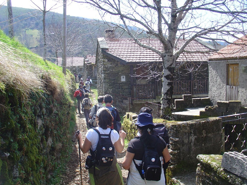 Quem caminhar por conta própria é livre de fazer o que quiser e quando quiser, mas quem pretender participar nestas coisas em grupo e ainda por cima com grupos grandes, tem que cumprir regras.O grupo maioritário da retaguarda, em que seguiam os guias, regressou pela branda da Aveleira, tendo apreciado demoradamente este interessante agregado populacional, com várias casas profundamente remodeladas, bem como as melhorias de acesso e motivos de lazer introduzidas, tendo finalmente regressado à capela da Sr.ª da Guia.