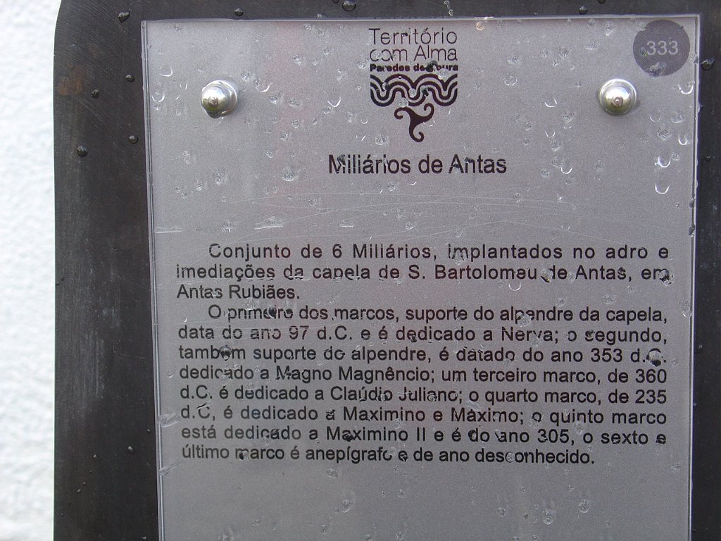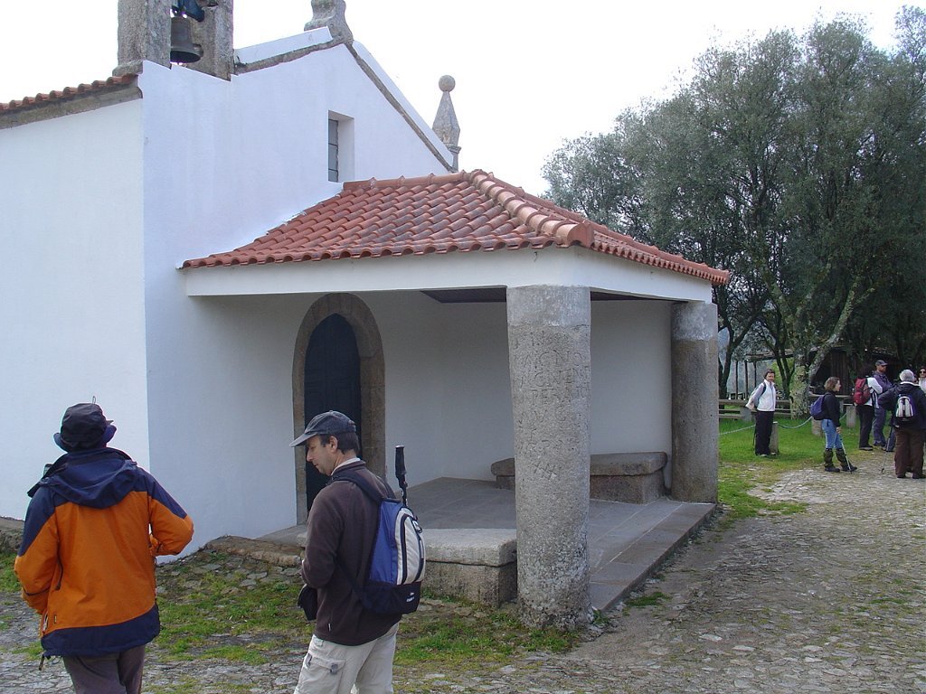 Tirada a foto de grupo, regressamos ao estradão florestal, seguindo na direcção de Antas, onde pudemos observar a pequena capela de S. Bartolomeu, com os seus vestígios da passagem romana – os marcos miliários - que indicavam as milhas romanas da via militar 19, do itinerário de Antonino.