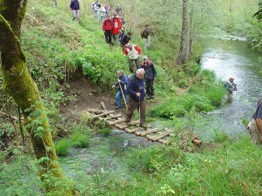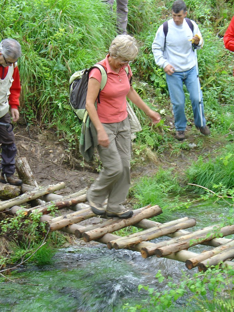 Depois de alguma emoção na travessia de uma ponte de madeira improvisada, junto à confluência com um pequeno ribeiro, mas que não apresentou dificuldade de maior, iniciamos a subida na direcção do lugar de Casco, seguindo-se o desvio para a igreja românica de Rubiães, onde fizemos a pausa para almoço.