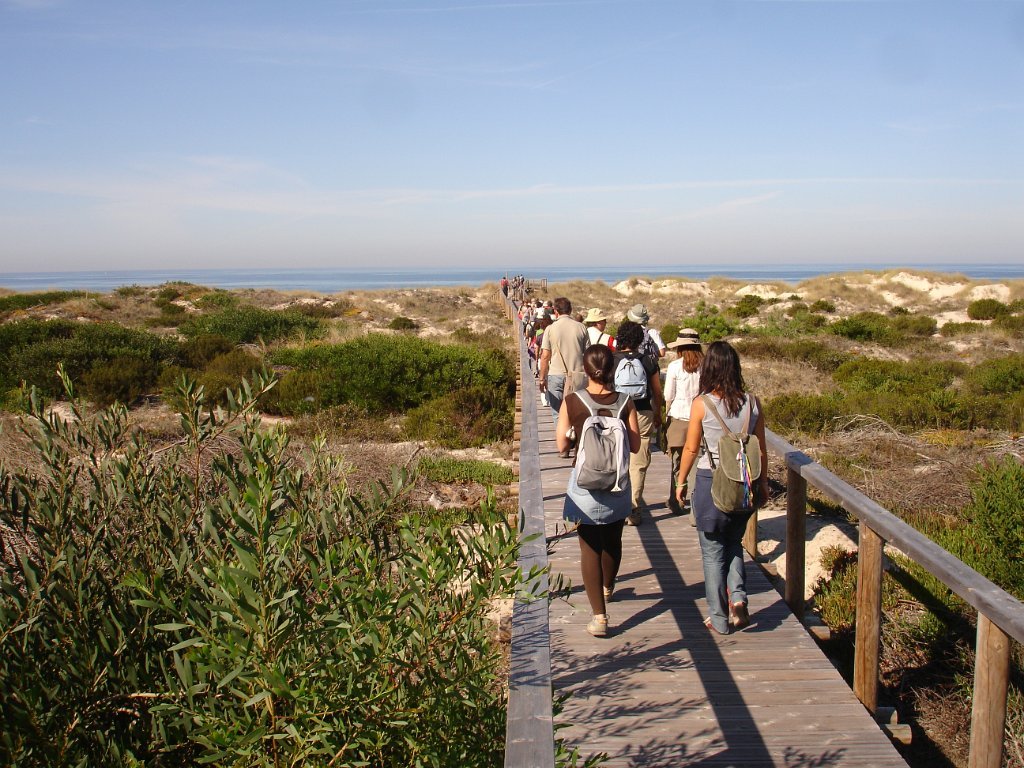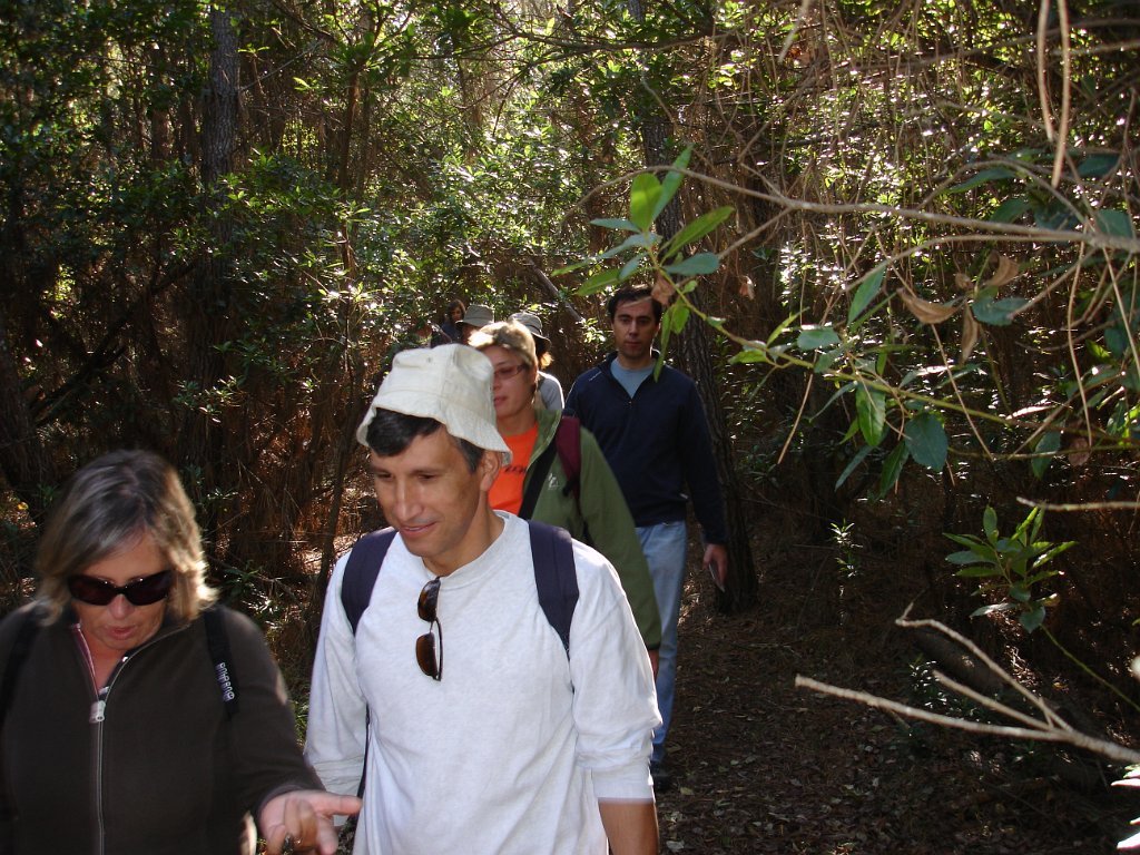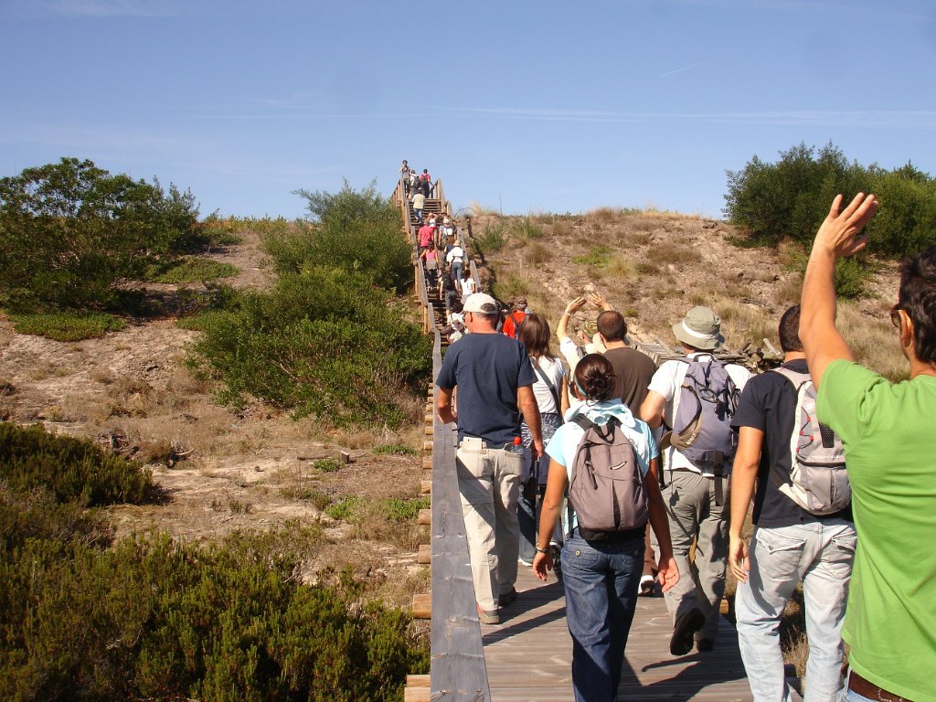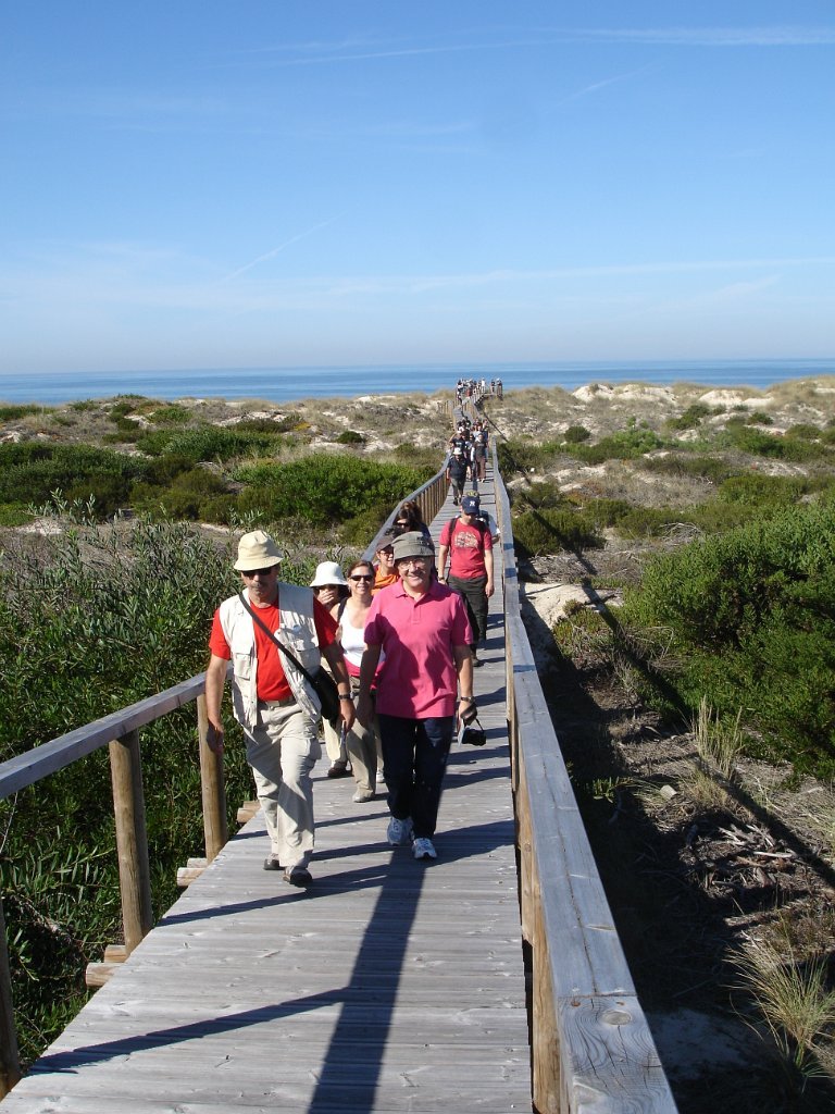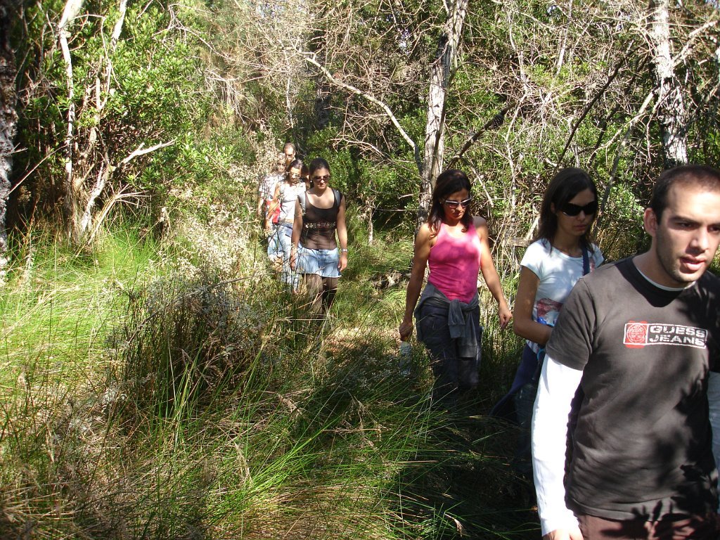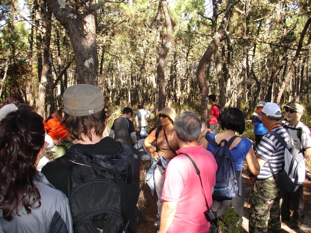 Eram 10:00 quando a Isabel Ruela, jovem arquitecta paisagista, começou a guiar o extenso grupo (52 + cão), pela floresta adentro, depois até às dunas e vista de mar e, finalmente, por um percurso - em parte não aberto ao público - de regresso ao ponto de partida, onde chegamos como previsto pelas 13:00.