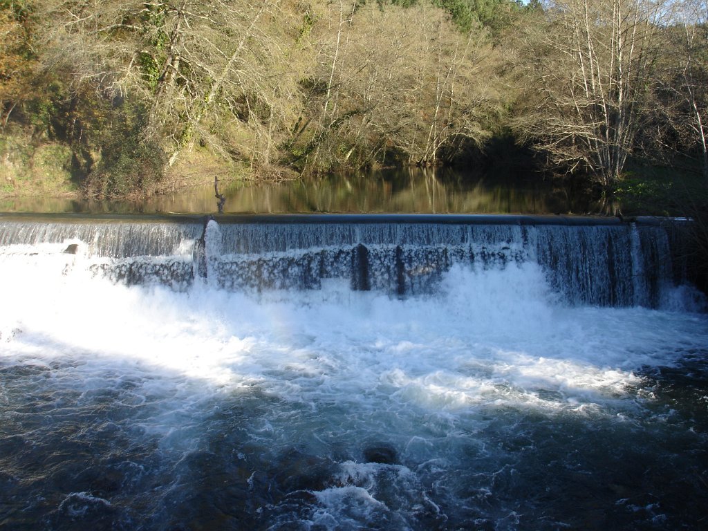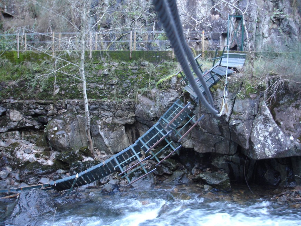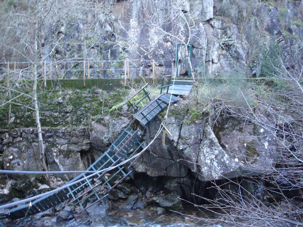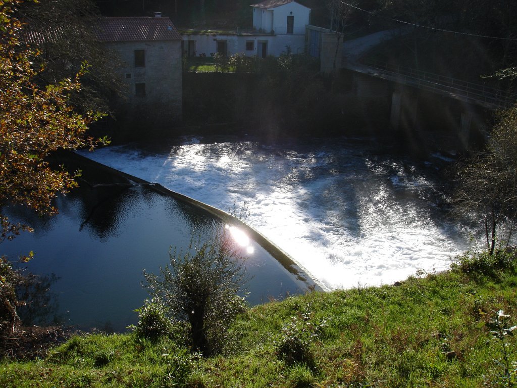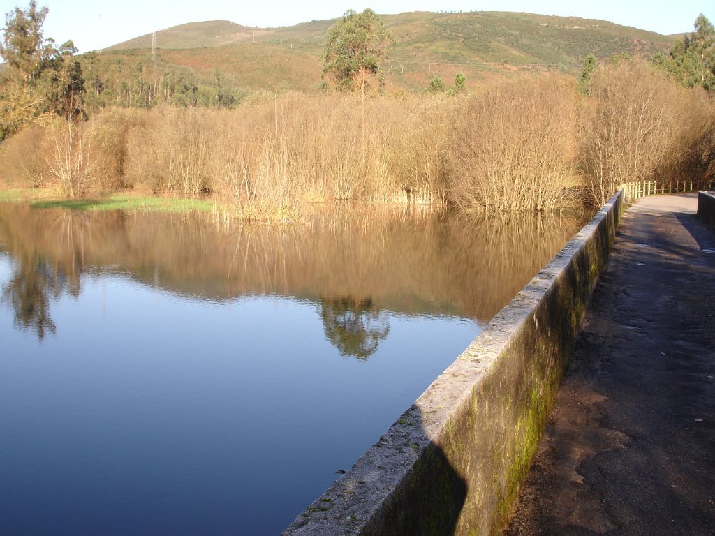 Começamos por o acompanhar na sua descida para a foz localizada em Caminha (o rio Coura tem cerca de 50 km de comprimento desde a sua nascente até á foz). Logo no início e devido ao aumento do caudal do rio parte do trilho estava submerso o que nos obrigou a caminhar pela estrada até atingirmos a barragem que forma a albufeira. Aqui teríamos de cruzar o rio para a margem contrária sobre uma ponte Himalaia, mas tal não foi possível por a mesma ter sido arrastada pelas enxurradas dos dias anteriores.