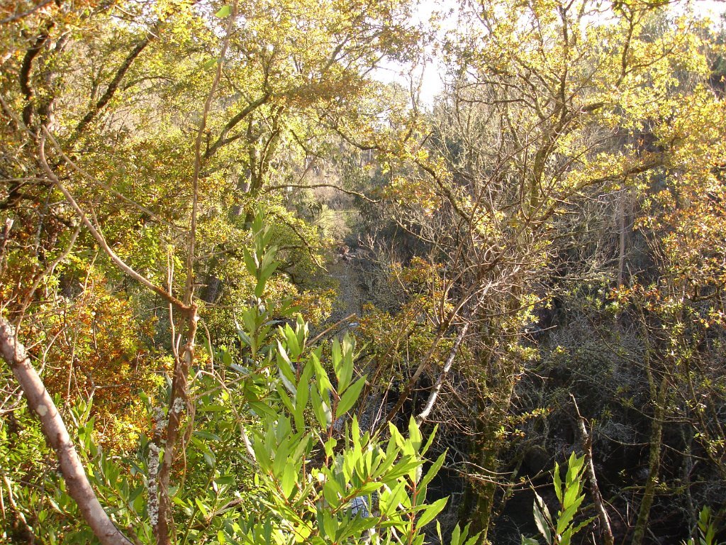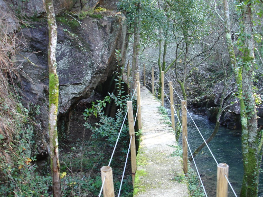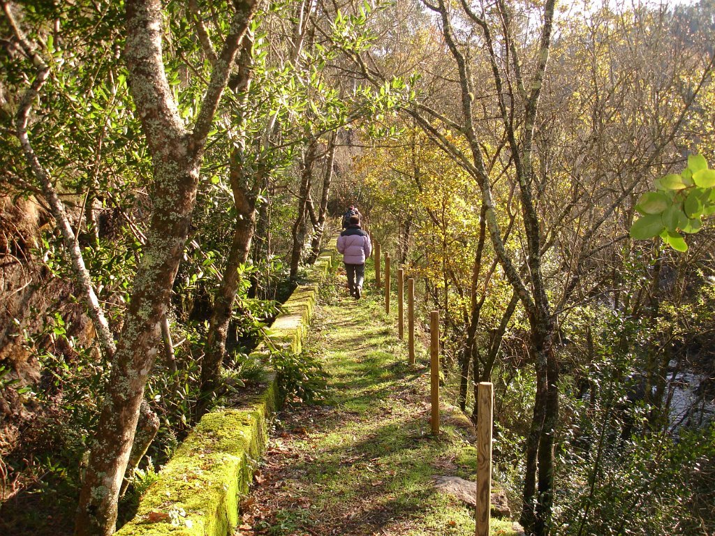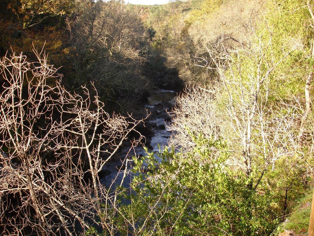 O percurso feito sempre através da garganta escarpada do vale do rio, por baixo de vastas copas de árvores autóctones, típicas das ribeiras de montanha, com uma policromia muito bonita ajudada pelo sol.