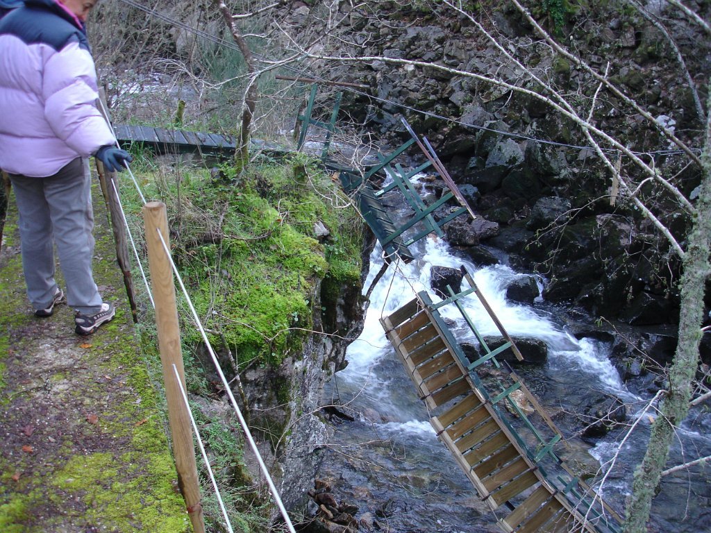 No final da levada e atingindo-se a ponte destruída pelas águas do rio houve que retroceder e voltar ao inicio do percurso. Aqui e após uma curta viagem nas viaturas (cerca de 1,5 km) até ao parque de campismo de Covas, demos inicio à segunda parte da actividade, que consistiu na realização do “Trilho de Pagade”, não sem primeiro ter havido um acertar de horas com os proprietários do parque, em relação ao almoço.
