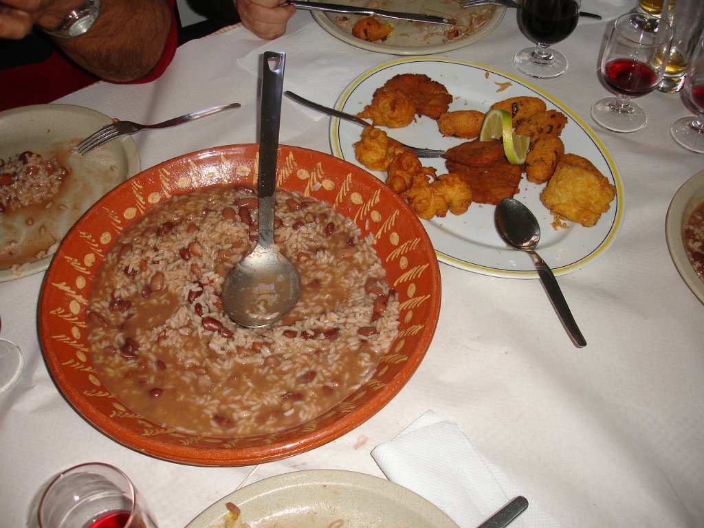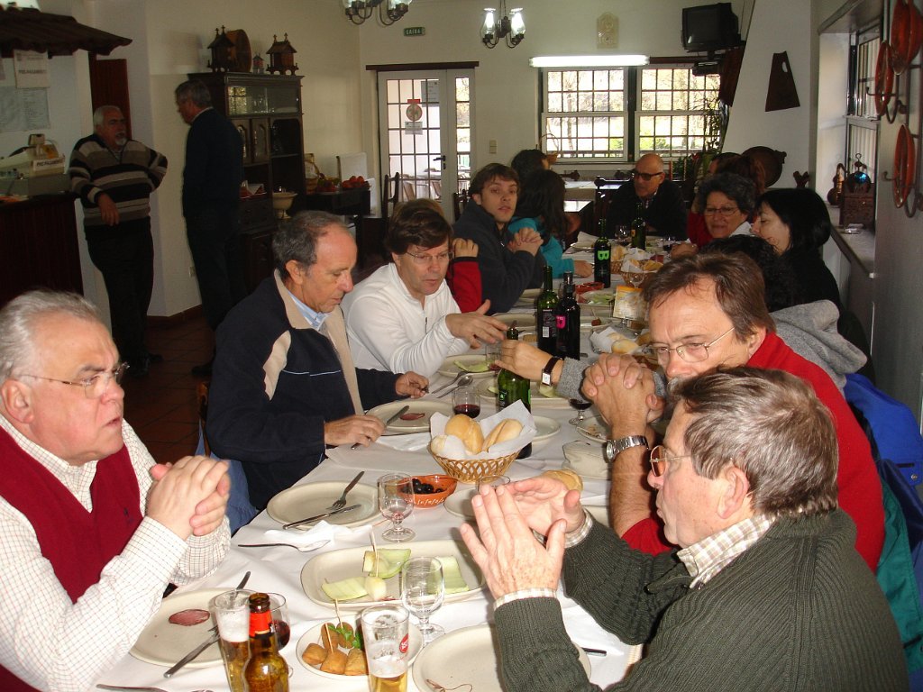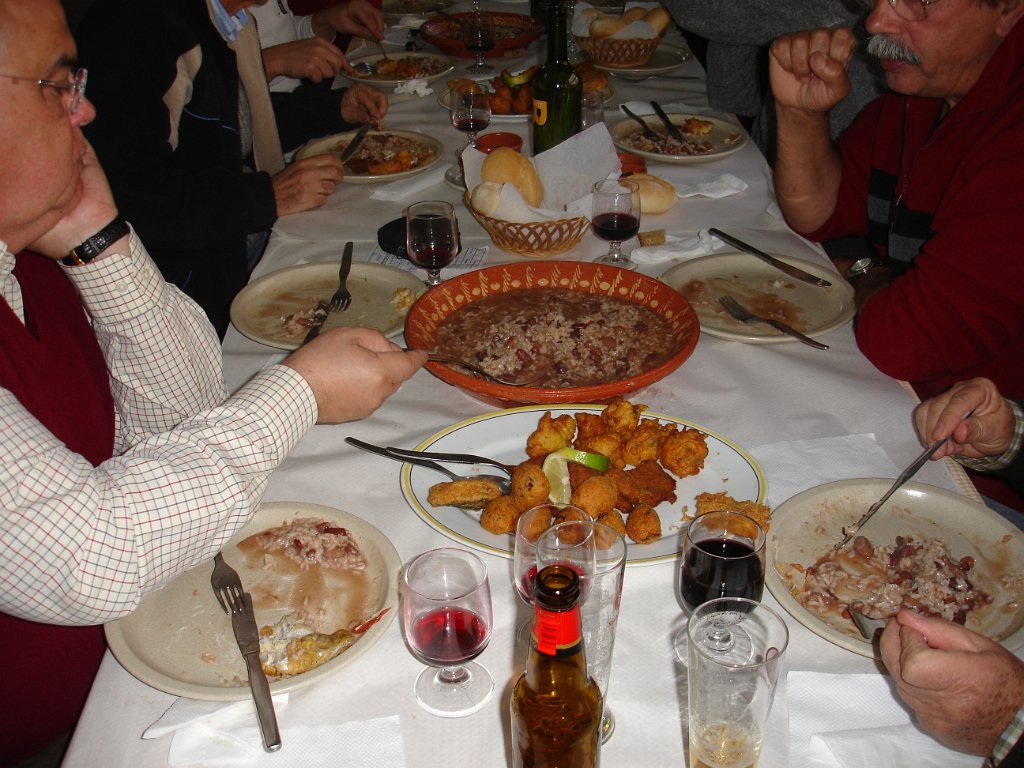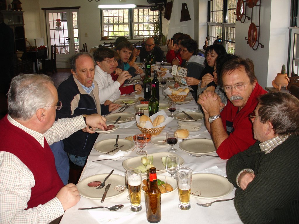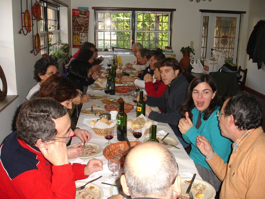 As entradas já estavam em cima da mesa, seguindo-se uma sopa á lavrador, arroz de feijão com pataniscas á moda de Montalegre, leite-creme na sobremesa não faltando o bolo-rei e o espumoso. Para acompanhar tudo isto o caminheiro Pimenta brindou o grupo oferecendo vinho BRONTE em garrafas individuais e de castas diversas (Cabernet, Merlot e Syrah).
