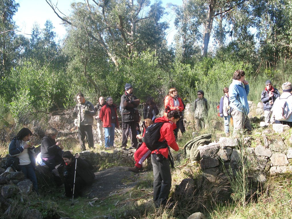 Em breve, espicaçados pelo frio, atravessámos o Largo das Tílias, saudando o amigo António e a esposa, e recordando os saborosos “samos” com que, na casa da Quinta, nos deliciámos, já lá vão dois anos. O Caminho da Revolta levou-nos até ao Cruzeiro do Vale, onde a primeira intervenção do nosso erudito guia nos chamou a atenção para o vandalismo que impera no nosso país, pois um outro cruzeiro, o de São João, muito mais antigo, também ali existiu e foi roubado nos finais do século XX, perante a indiferença das autoridades. Deste local saíam, no fim de junho, os “clamores”, procissões que se dirigiam ao mosteiro de Cabanas, implorando tempo mais clemente para a agricultura (agora pedem-se subsídios, mas o Senhor está lá para Bruxelas…).