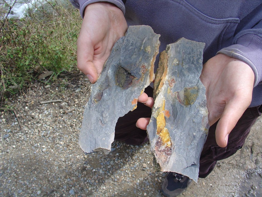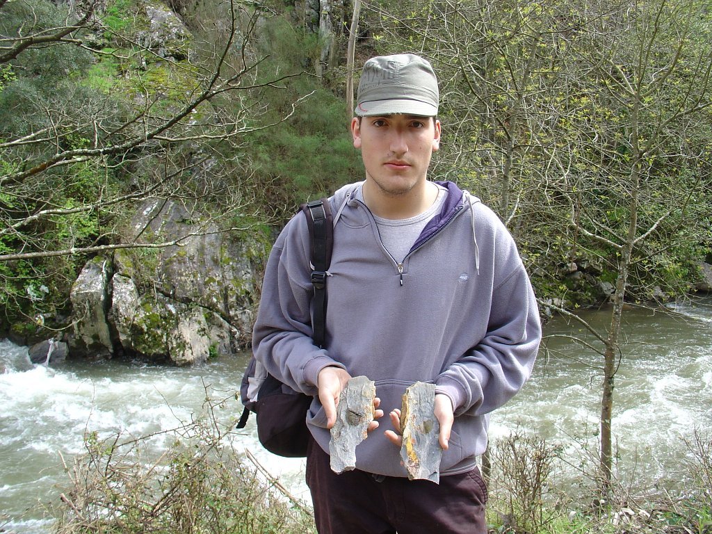Continuamos a caminhar ao longo da crista da serra, desfrutando de um panorama vastíssimo, em direção ao rio Ferreira. Algumas descidas íngremes, mal-amadas por alguns. Já próximo do rio, chegamos a uma zona rica em fósseis. Trilobites, nem vê-las. Mas foi fácil e apaixonante procurar e encontrar vários outros tipos, vestígios da presença do mar nestas paragens, há 500 milhões de anos.