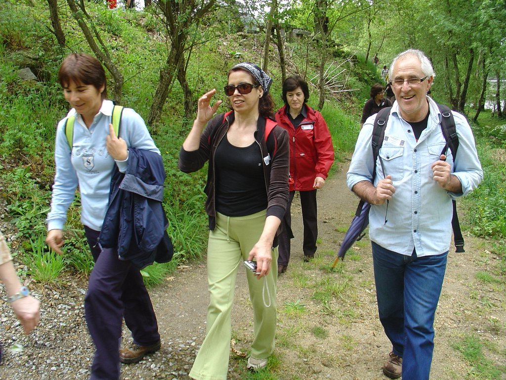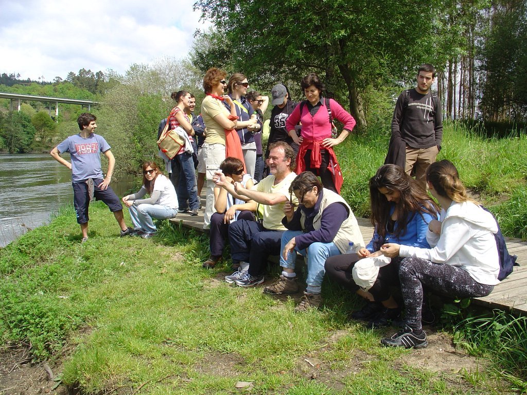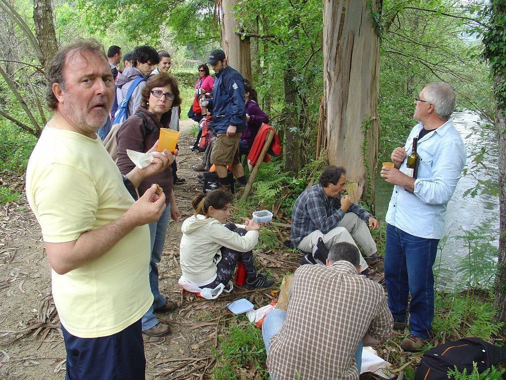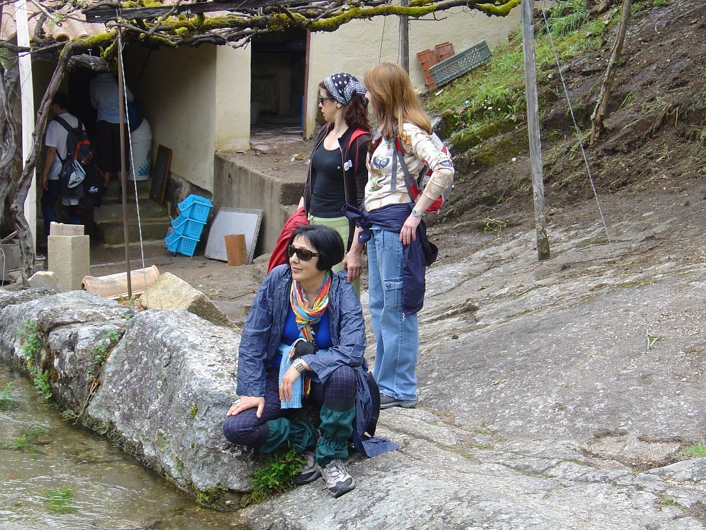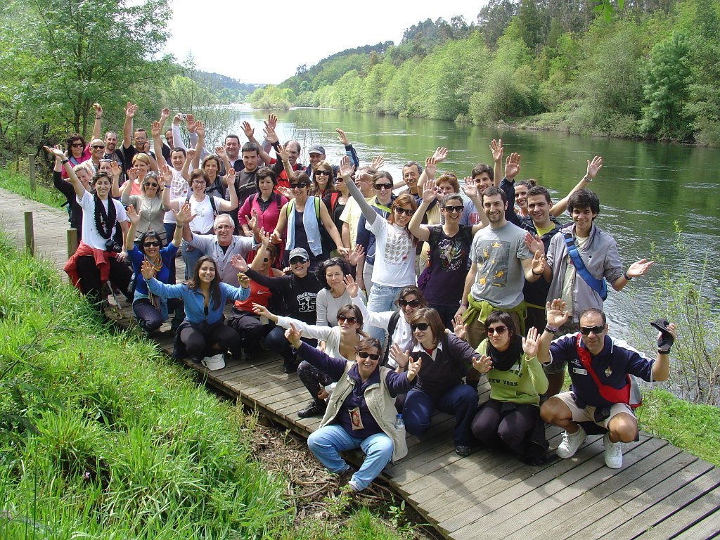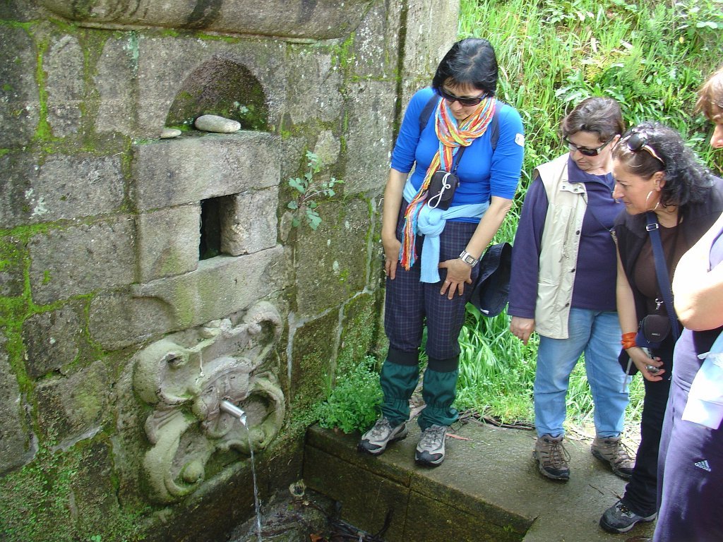 Depois do almoço o tempo melhorou bastante e, com a barriga recomposta, lá fomos observando os pouco visíveis açudes, quase escondidos na torrente, seguindo envoltos na densa vegetação ribeirinha até Bravães, onde tirámos a habitual foto de grupo, tendo feito depois uma fugida até à Fonte Santa.
