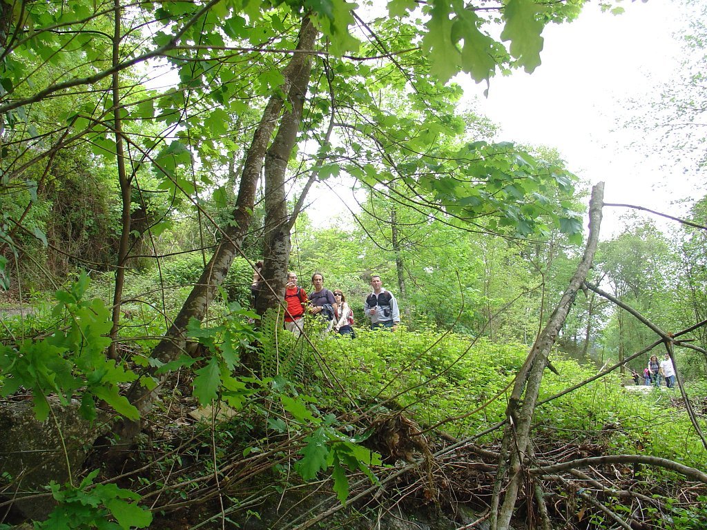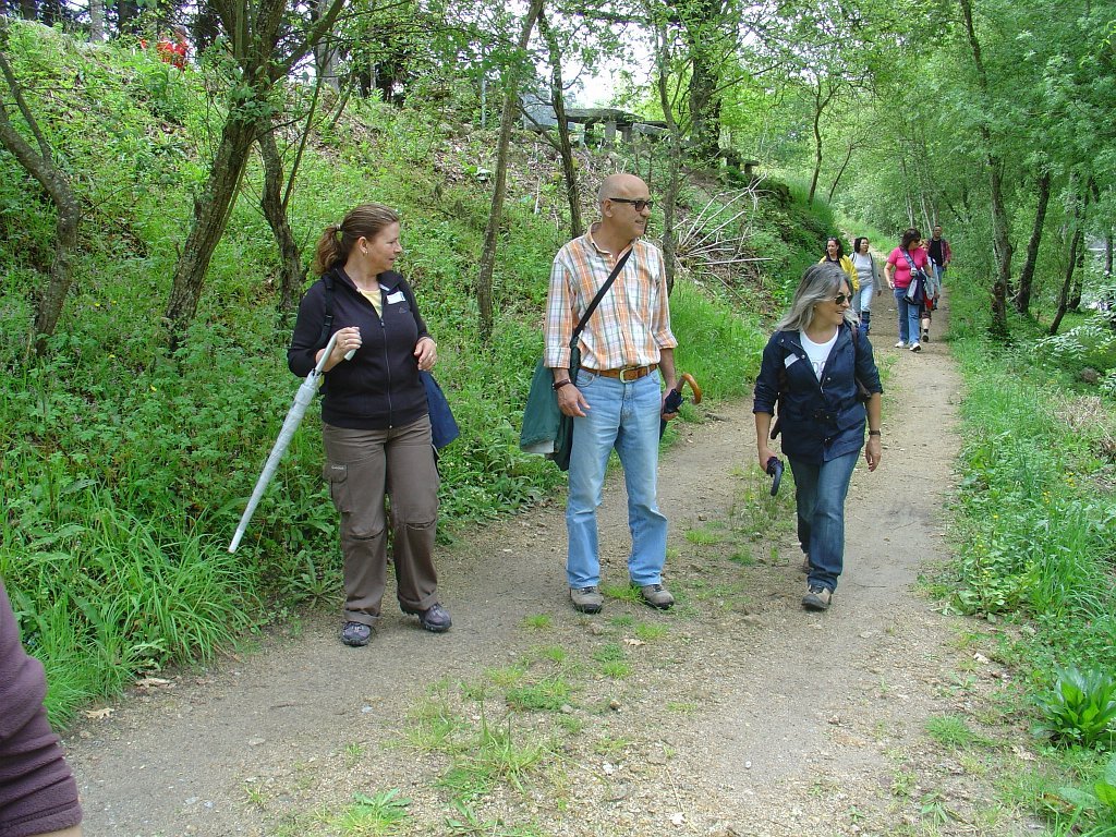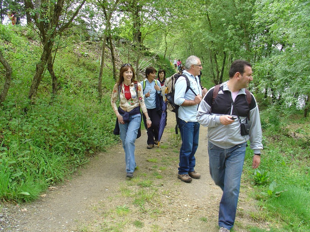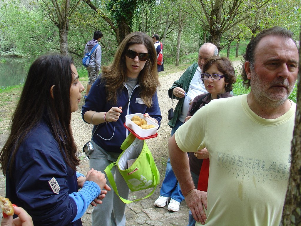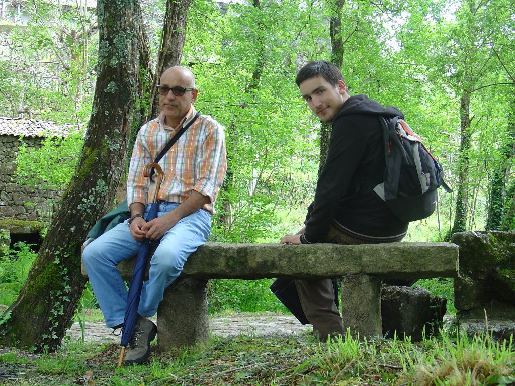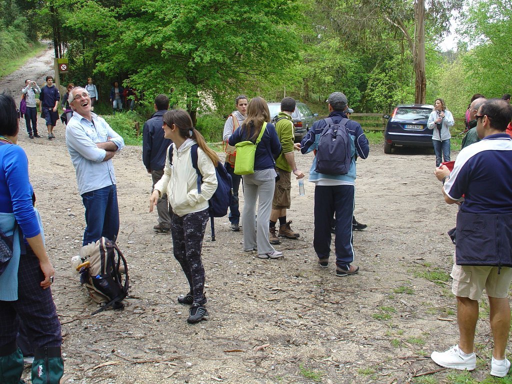 Depois do almoço o tempo melhorou bastante e, com a barriga recomposta, lá fomos observando os pouco visíveis açudes, quase escondidos na torrente, seguindo envoltos na densa vegetação ribeirinha até Bravães, onde tirámos a habitual foto de grupo, tendo feito depois uma fugida até à Fonte Santa.