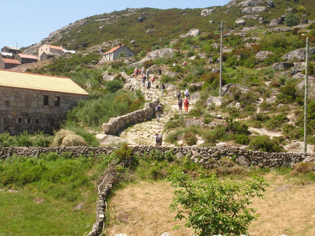 Subimos por um caminho lajeado para chegar a uma chã, de onde observámos vasta área de paisagem do Alto Minho e terras de Espanha. Na descida, passámos por pequenas construções que constituem um conjunto de brandas de cultivo (Outeiro Gordo, Costa do Salgueiro, Lapinheira).