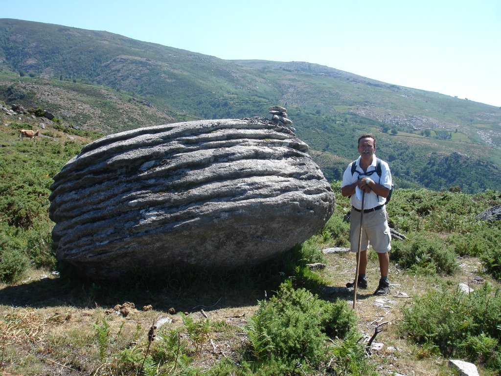 À medida que nos aproximámos da Branda do Furado, pudemos observar os "blocos erráticos" nas vertentes. Na chegada à branda, desviámo-nos um pouco para observar a zona onde o rio da Aveleira desagua no Vez, e onde o Vez inflecte bruscamente para oeste, correndo agora entre penhascos. Neste local ocorre a intersecção das moreias (depósitos de materiais arrastados pelo glaciar).
