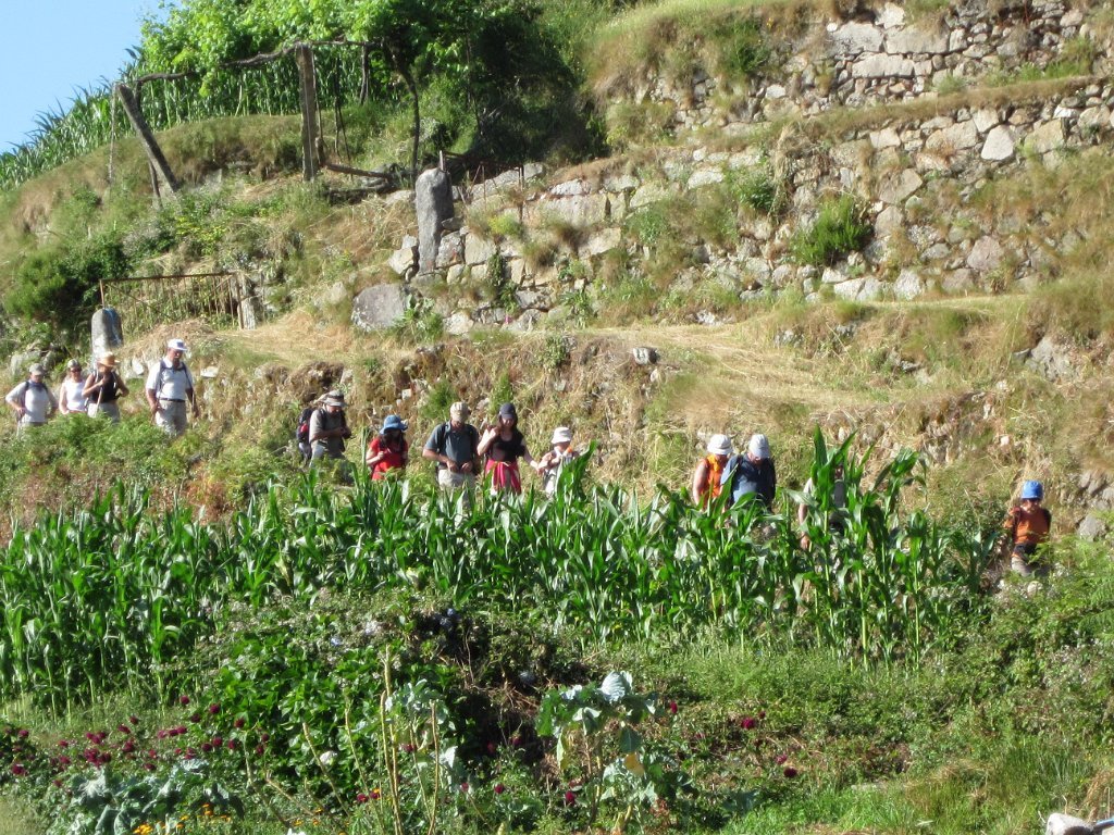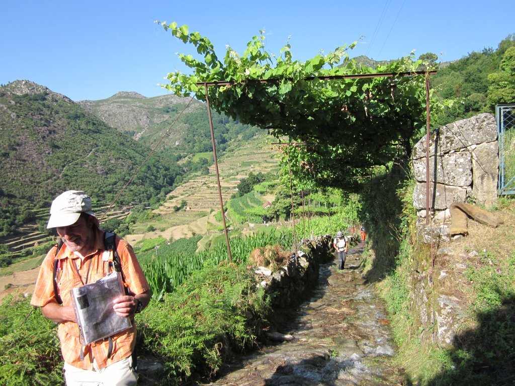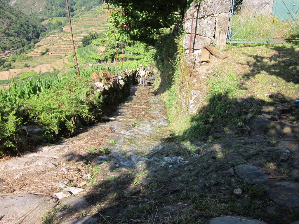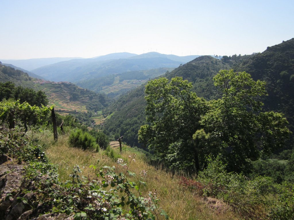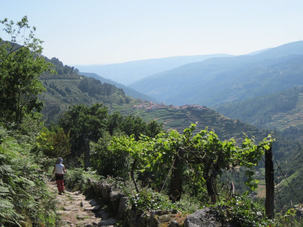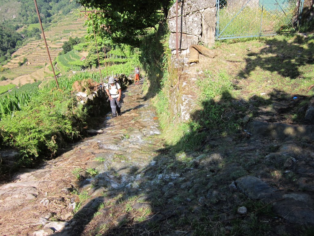Seguimos por entre carvalhos (Quercus flobur — carvalho-alvarinho) e rapidamente tivemos uma nova visão da multitude de socalcos que nos anuncia Padrão, mas antes passámos em Porta Cova, que recebe da montanha o rio do mesmo nome, saltitando por baixo da sua ponte. Daqui seguimos por caminho já conhecido e descemos a Sistelo, mais uma vez acompanhando os socalcos e com possibilidade de observar alguma actividade laboral, às vezes de idosos.