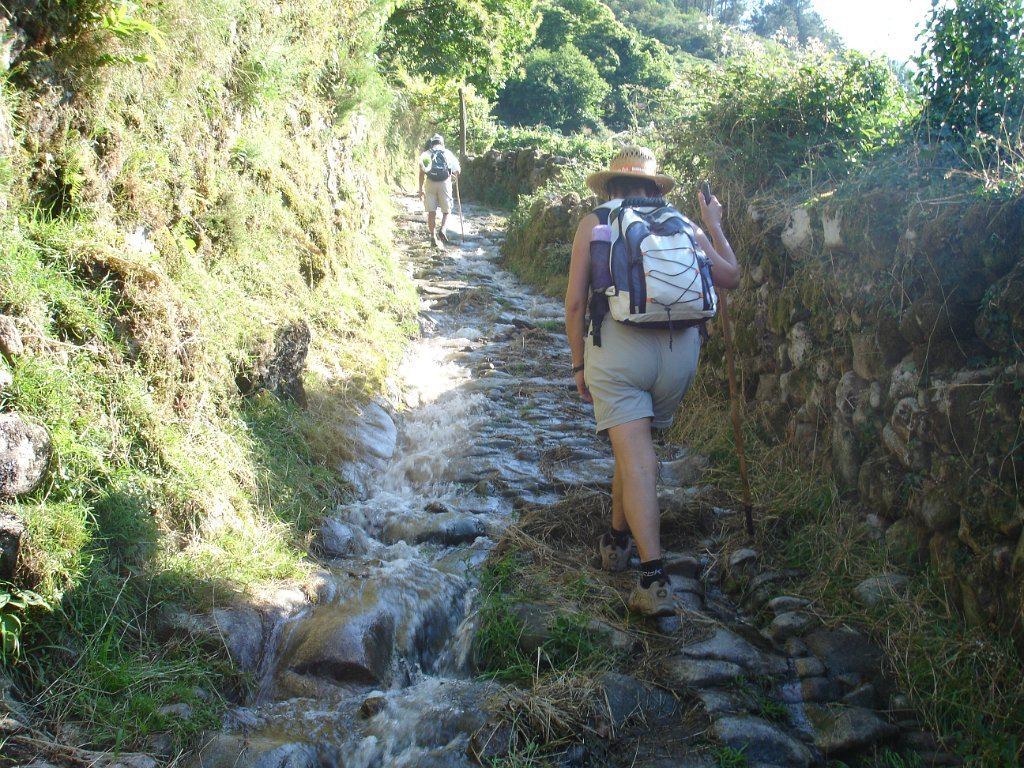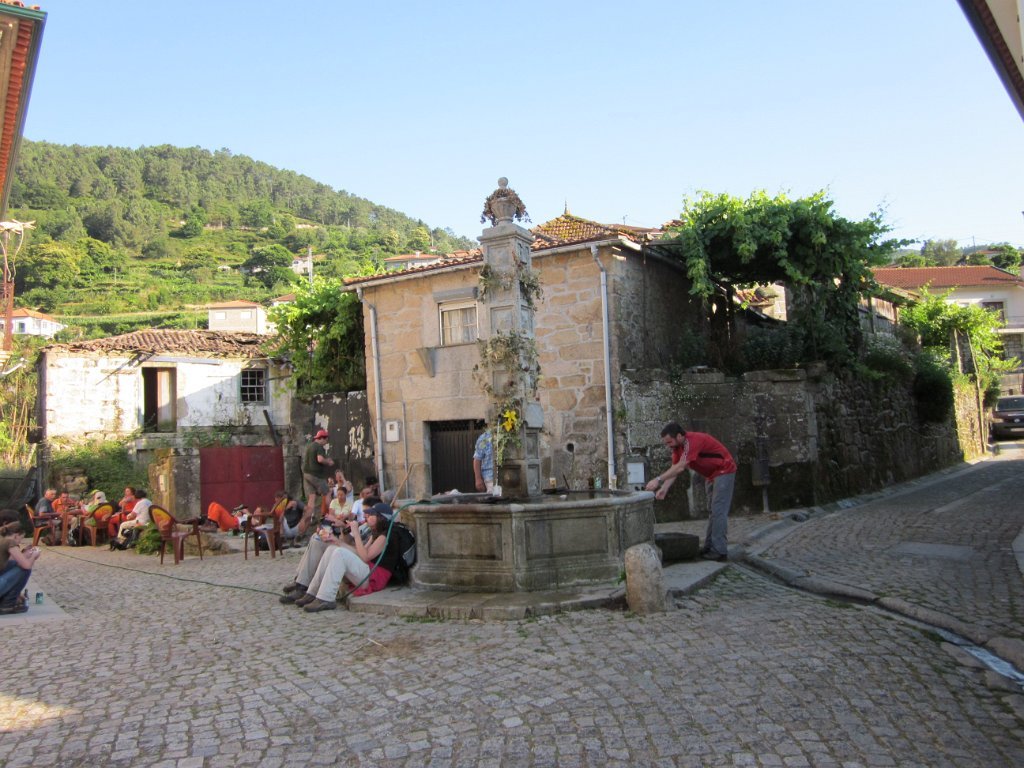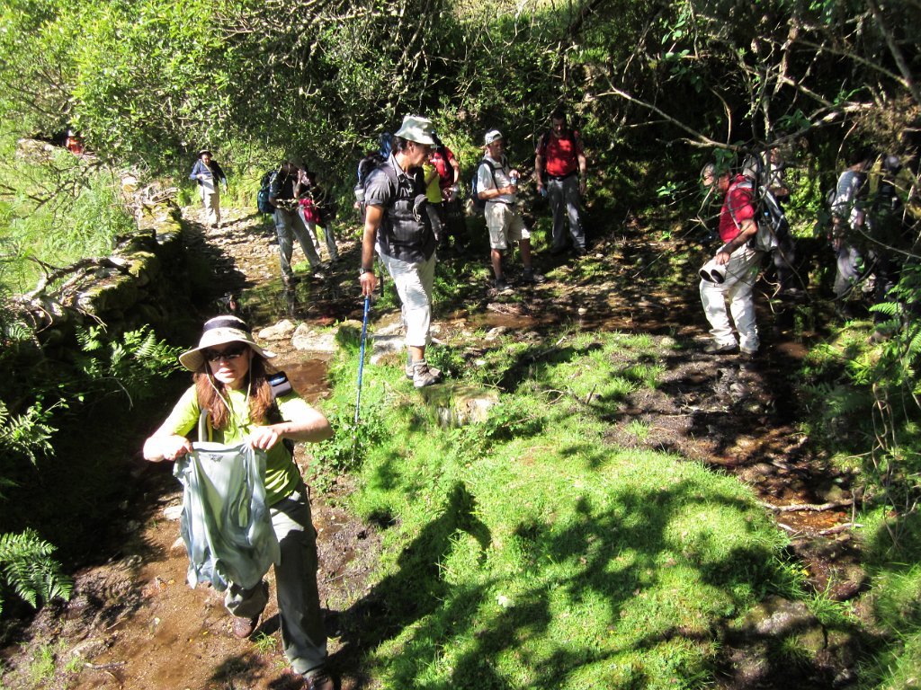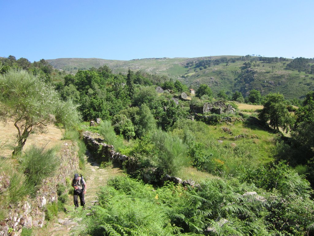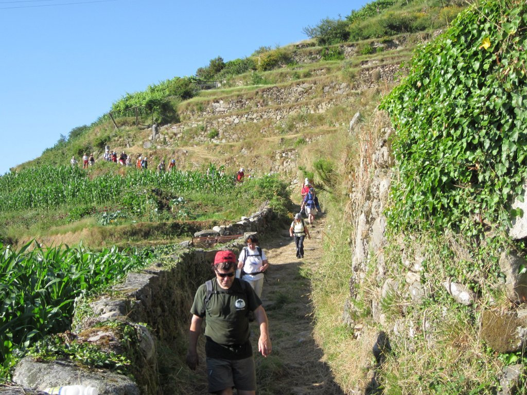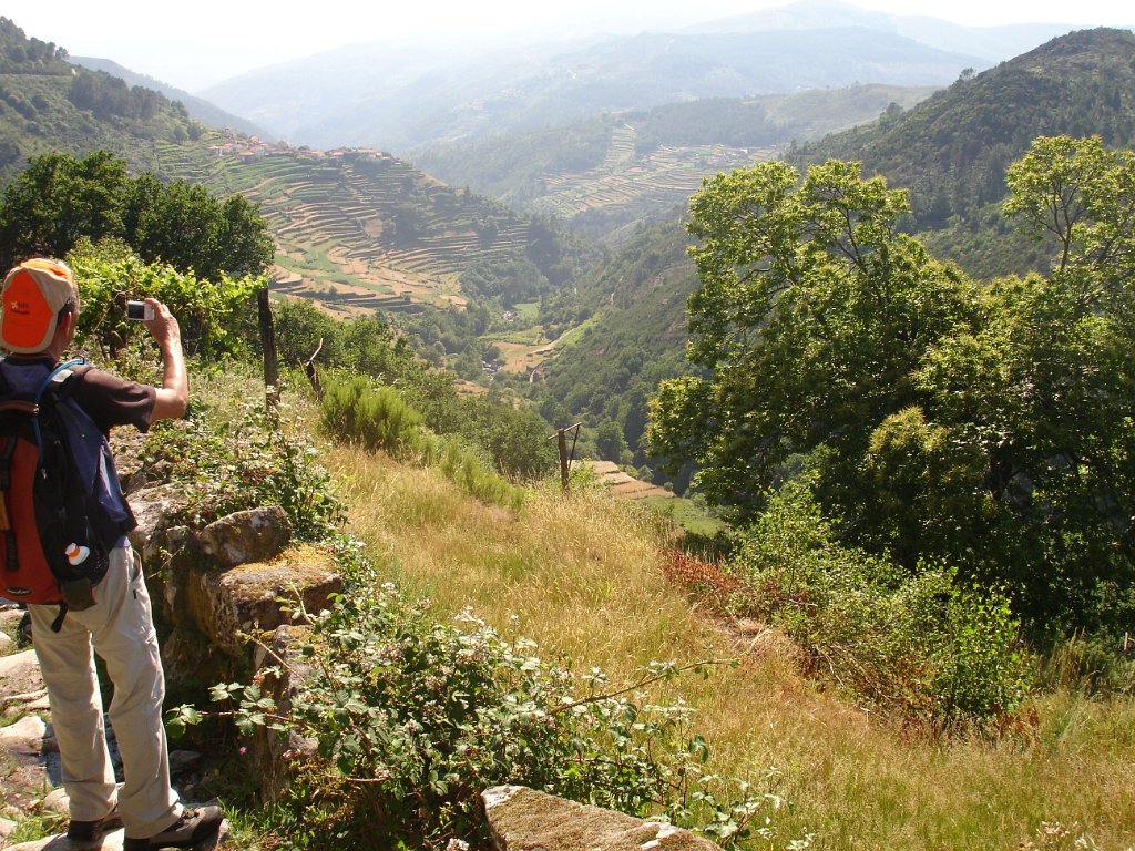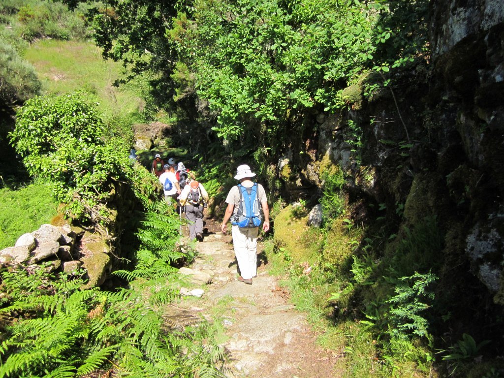 Seguimos por entre carvalhos (Quercus flobur — carvalho-alvarinho) e rapidamente tivemos uma nova visão da multitude de socalcos que nos anuncia Padrão, mas antes passámos em Porta Cova, que recebe da montanha o rio do mesmo nome, saltitando por baixo da sua ponte. Daqui seguimos por caminho já conhecido e descemos a Sistelo, mais uma vez acompanhando os socalcos e com possibilidade de observar alguma actividade laboral, às vezes de idosos.