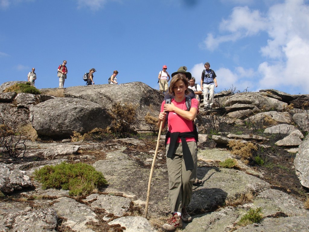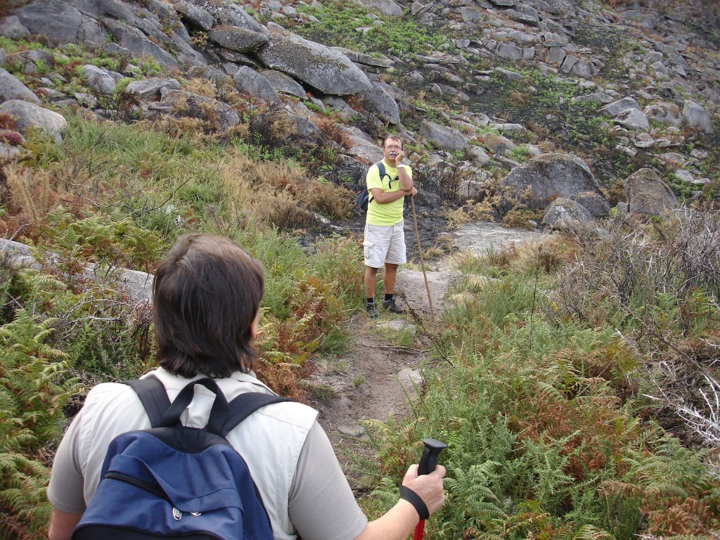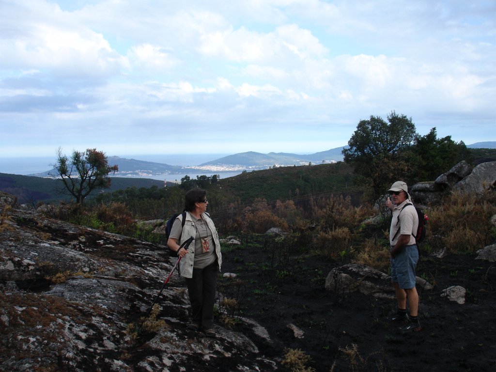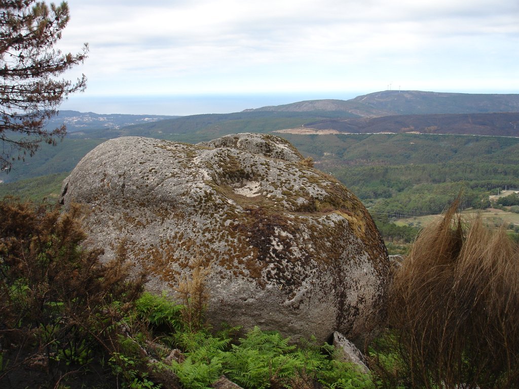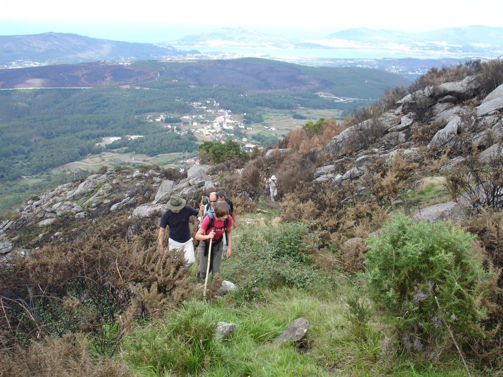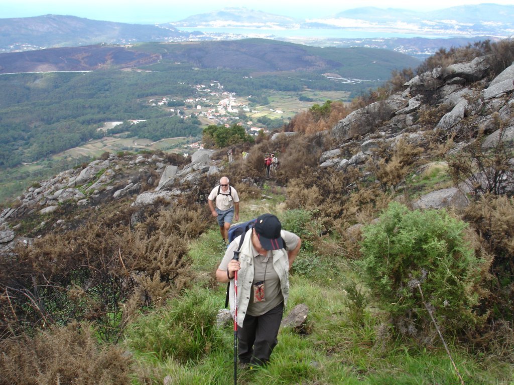 Logo depois, através de uma antiga calçada, começámos a subir pela Encosta do Carvalho em direção ao alto. Passámos e visitámos o local do Penedo do Sino, ou da Igreja dos Mouros, com os seus ideogramas, parando de vez em quando para estender a vista sobre a foz do rio Minho, com Sta. Tecla e Caminha, Âncora, serra de Sta. Luzia com a foz do Lima em Viana, e mais para cima todo o vale do mesmo rio e as serras de Coura, Peneda, Amarela, Oural, Padela e Geraz. Enfim, todo o privilégio de poder contemplar este panorama, que descrito não traduz aquilo que a vista retém.