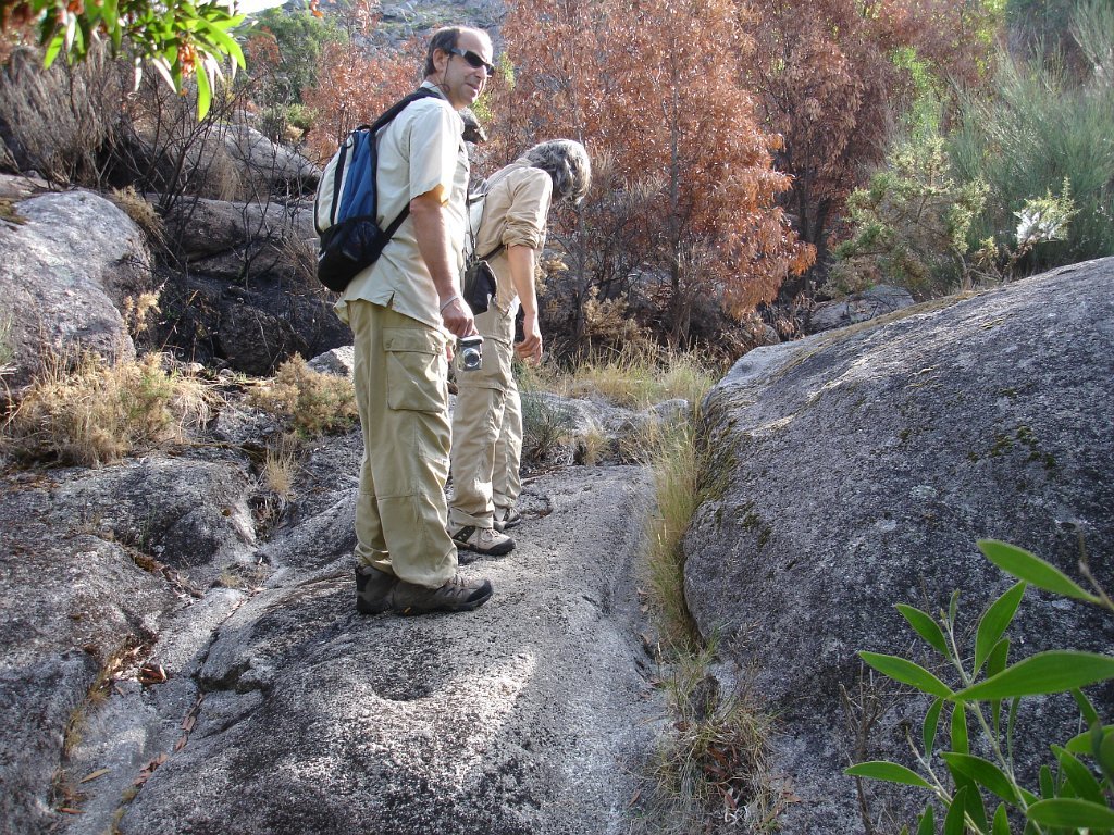Daqui seguimos em direção ao geodésico da Pedra Alçada e, novamente com a vista a perder-se pela imensidão, começámos a descida para a Chão do Guindeiro, através do impressionante “reino de granito”. Daqui continuámos a descer através do caminho que nos levaria até à Fonte da Telha, mas antes virámos novamente em direção ao Alto de Valverde, onde se fez novo descanso.
