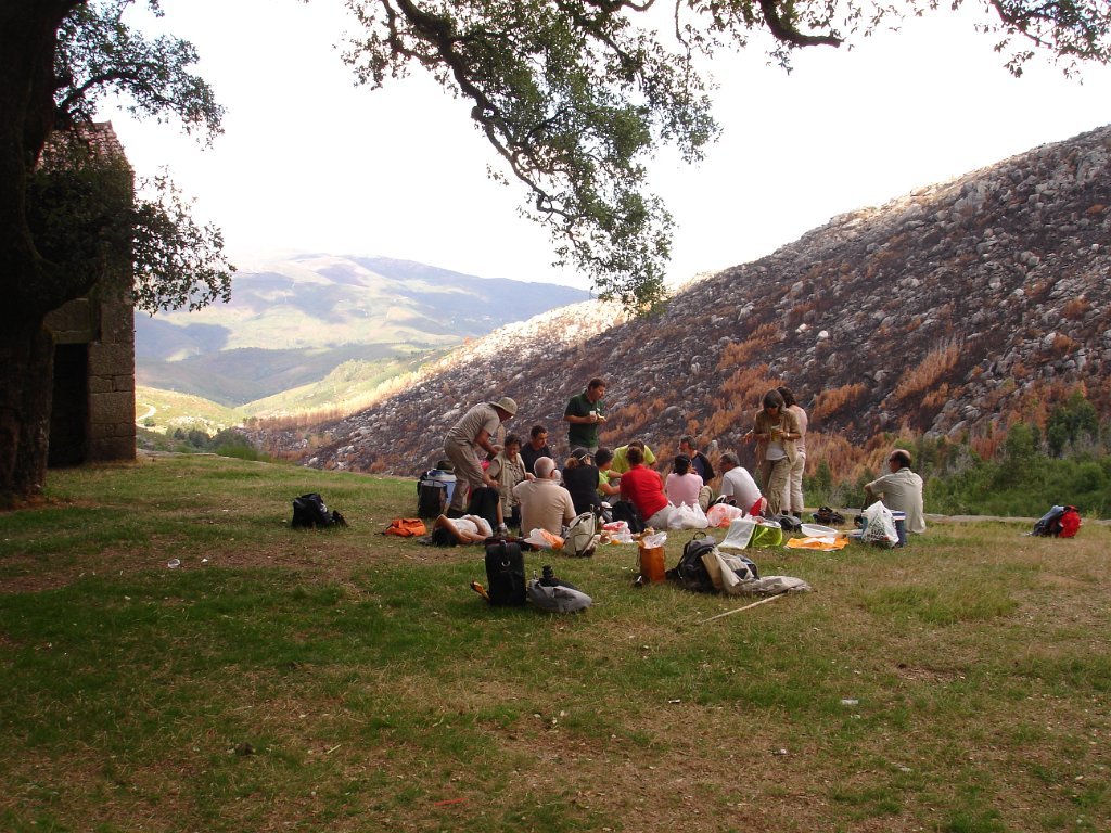 Atingimos assim o adro da capela e, como as viaturas já cá tinham sido colocadas antes de se iniciar a atividade, e porque a fome já apertava um pouco, rapidamente se transportaram as geleiras e respetivos farnéis, estenderam-se as toalhas e sobre as mesmas foram colocados os vários tipos de iguarias por todos partilhados (nem queiram saber).