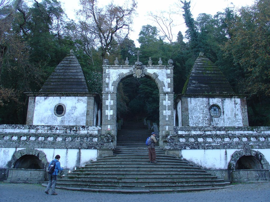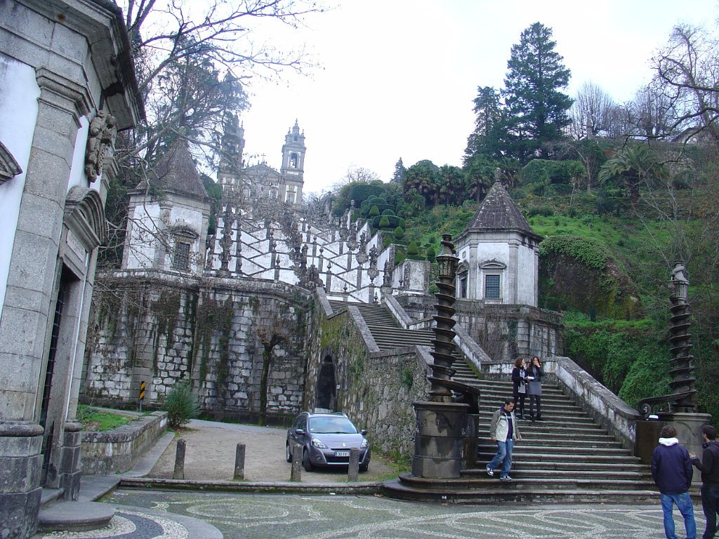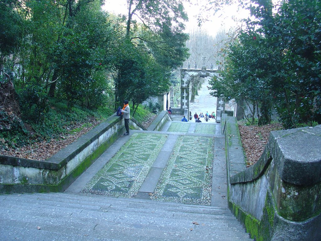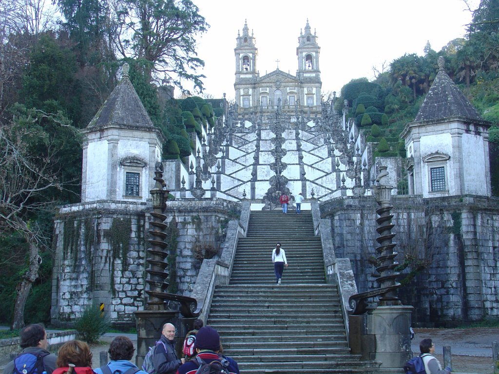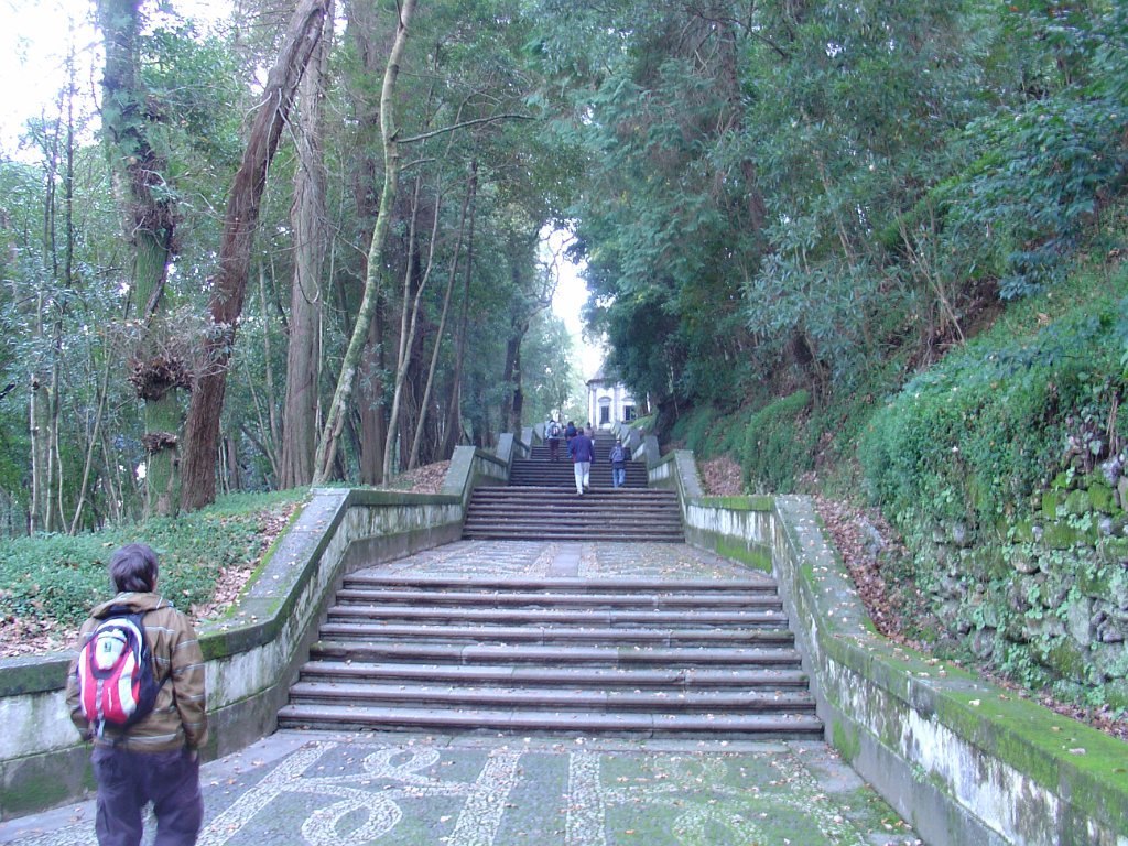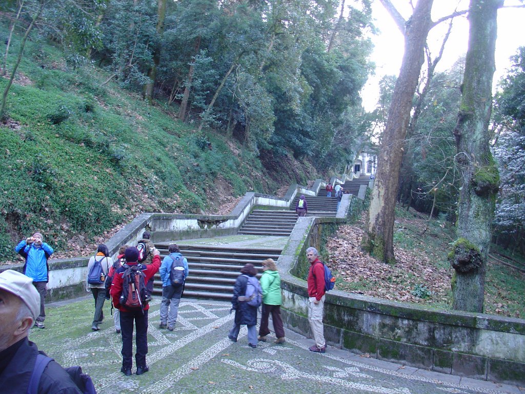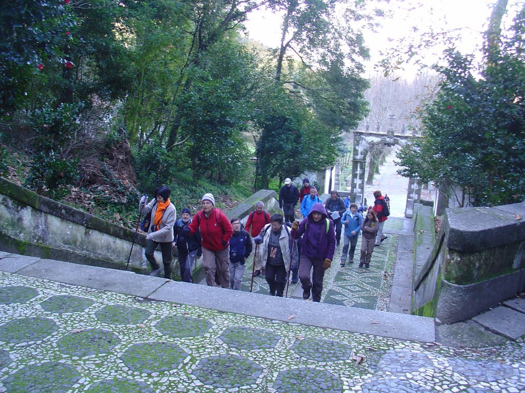 Chegados ao início do escadório do Bom Jesus, encontramo-nos com os restantes companheiros, que optaram por distintos meios de transporte e iniciamos a ascensão dos seus 581 degraus.