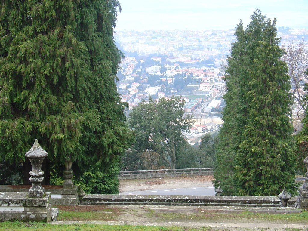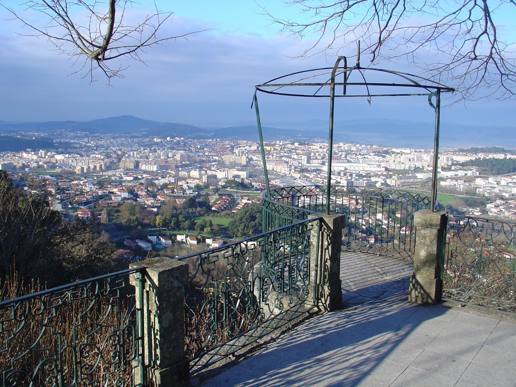 Saídos do parque, seguimos pela mata, na direcção do Sameiro, observando aqui e ali a paisagem, com Braga como tela de fundo.