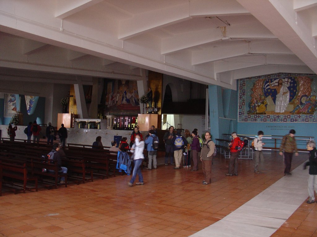 É decorada com os policromáticos painéis de Querubim Lapa, que retratam a vida de Cristo e com o muito polémico painel de Óscar Casares, designado de Salve Regine, com a representação do ainda mais polémico cónego Melo.