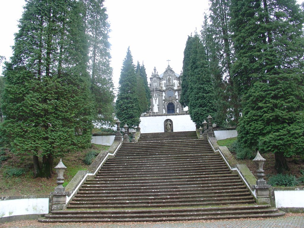 O Escadório do Pórtico, com as suas curiosas capelas de Via-Sacra, com as cenas da vida de Cristo, seguindo-se o Escadório dos 5 Sentidos – visão; audição; olfacto; paladar e tacto, representados em fontes em cada um dos seus patamares, terminando com o Escadório das Três Virtudes, com fontes dedicadas à Fé, Esperança e Caridade.