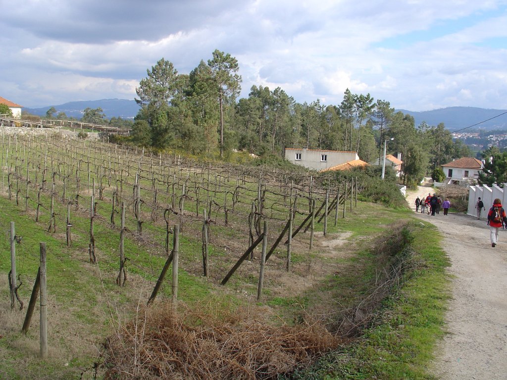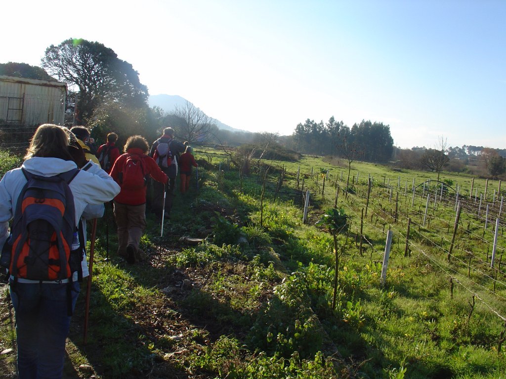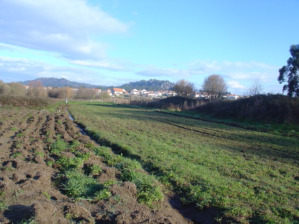 Depois de seguirmos durante algumas dezenas de metros ao longo do Rio Neiva, aqui já muito próximo da foz, inflectimos para o interior da freguesia e, passados minutos, o grupo estendia-se em longa fila indiana pelos férteis campos de cultivo.