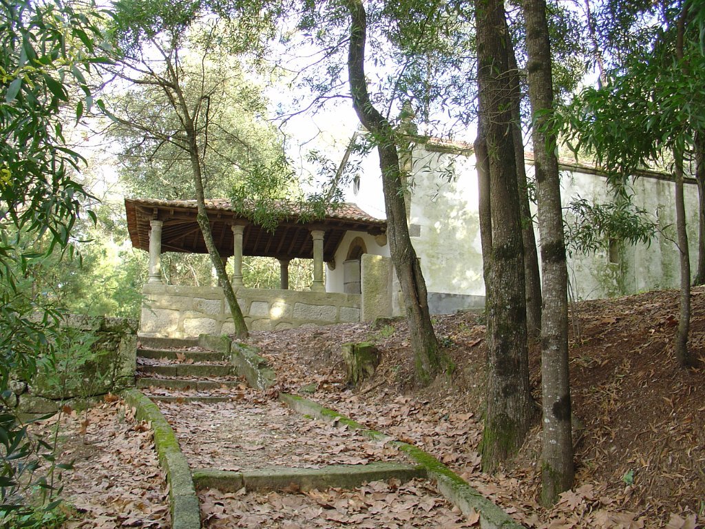 Retomada a marcha em toada lenta, um pouco adiante deixamos o percurso marcado para ir passar junto à Quinta do Belinho, onde viveu e morreu em 1960 o poeta António Correia de Oliveira. Porque não foi possível visitar a casa do poeta, apesar das diligências previamente encetadas para tal, o grupo dirigiu-se até junto da Capela da Senhora do Rosário, também pertencente à casa e que, por se situar defronte da mesma e num plano superior, permitiu uma espreitadela de longe.