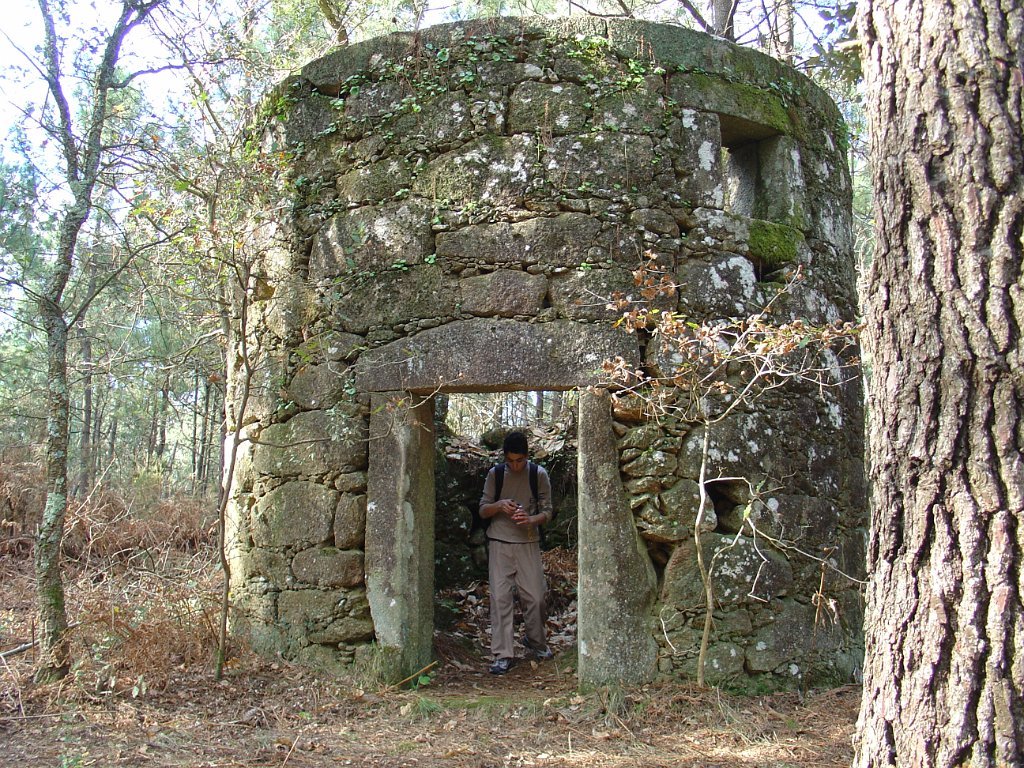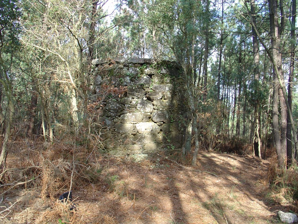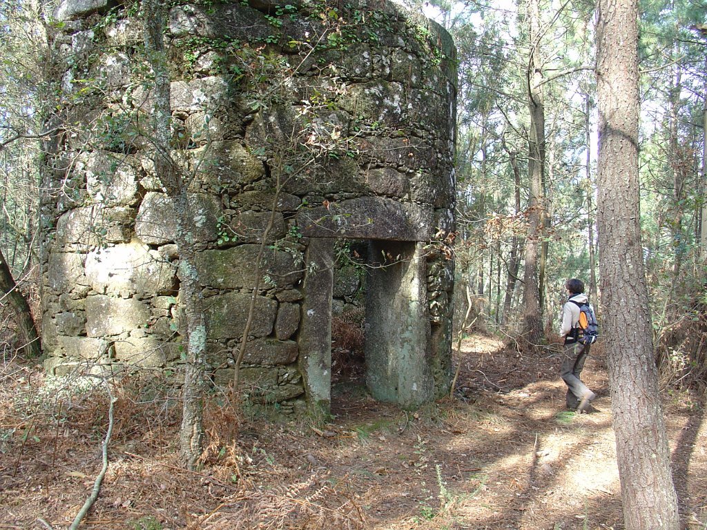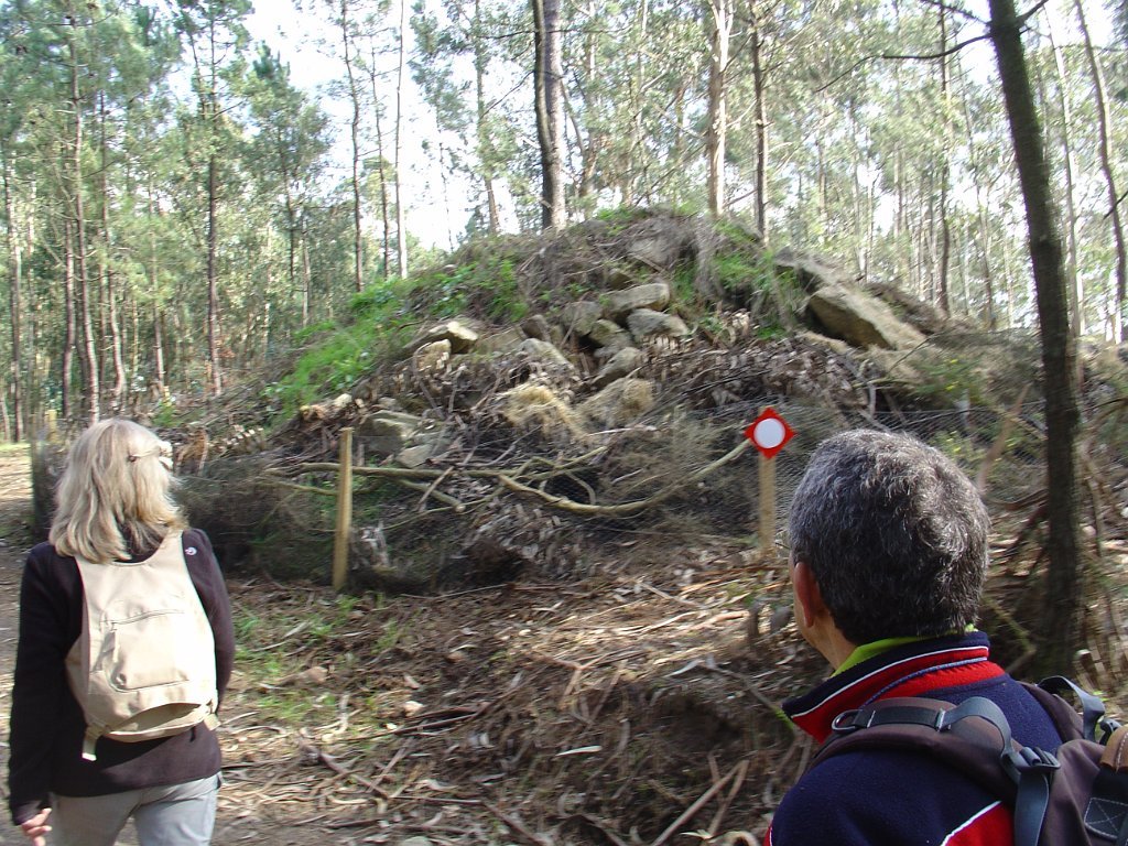 Iniciamos então uma suave descida tendo passado ainda pelas ruínas de 2 moinhos de vento, hoje no interior de um pinhal cerrado.