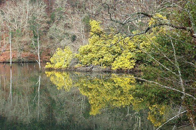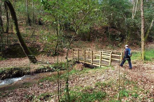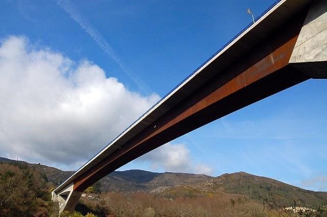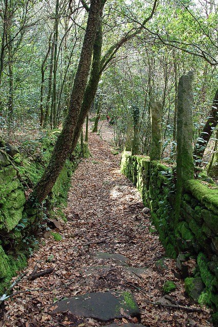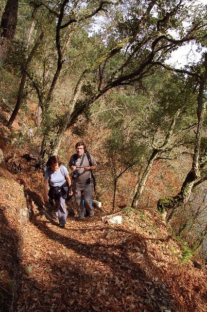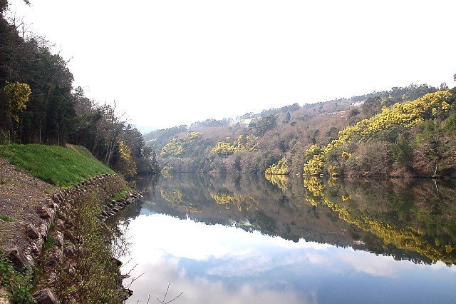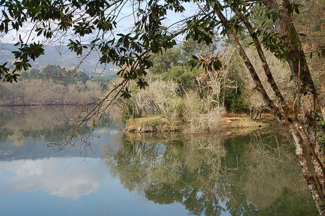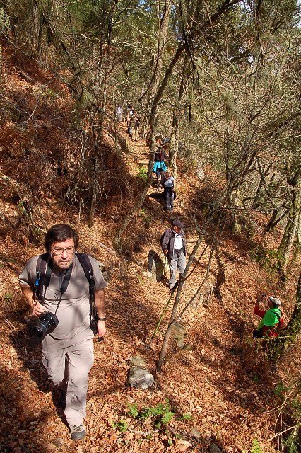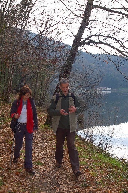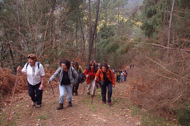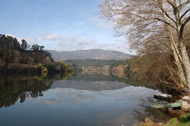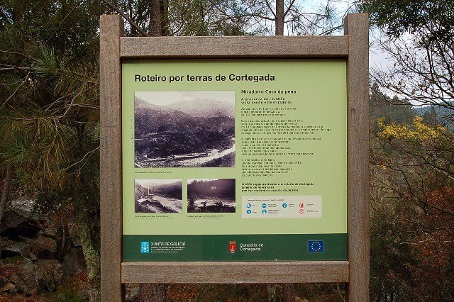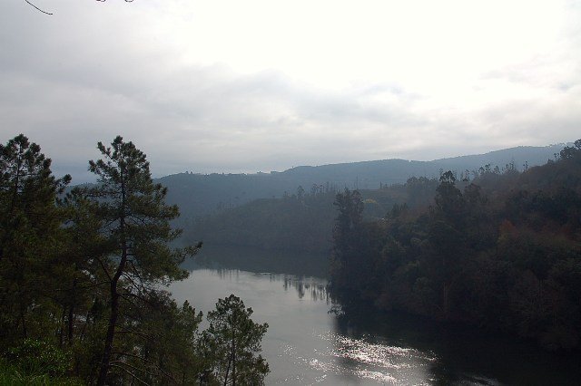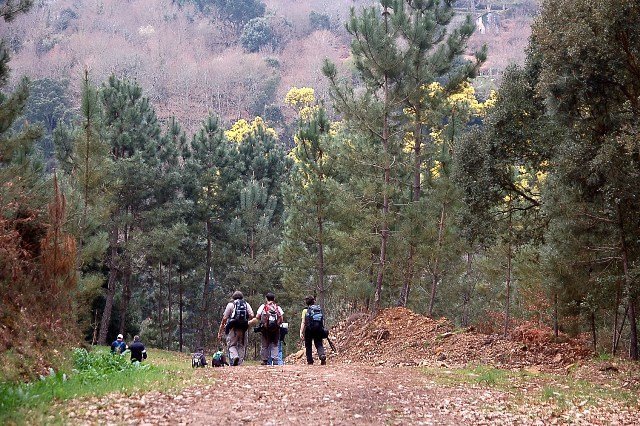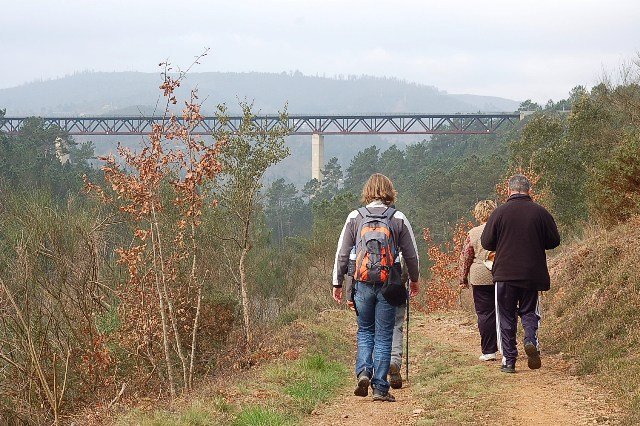 As margens do Deva e do Minho foram a nossa companhia durante cerca de 13 km, neste dia de Fevereiro morno, solarengo. Percurso limpo, conservado (apreciamos a natureza bem cuidada...),.. trilhos do contrabando? Natureza exuberante, medronheiros, carvalhos, loureiros, pinhos, naturalmente; vegetação a brotar, sinal de Primavera próxima; mimosas floridas, matiz amarelo vivo de encontro às águas da albufeira da Frieira, rio acima até Ribadavia... Balneário de Cortegada de Baños, um palacete modernista recentemente restaurado, cujas águas sulfurosas e ferruginosas a 38ºC de reconhecidas propriedades no tratamento de doenças hepáticas, respiratórias, gastrointestinais, urinárias e da pele, assemelha se a um túnel do tempo, capaz de nos transportar a um passado não muito longínquo, onde se desconhecia o significado de pressão/tensão (stress) ou economia global, contempla imperturbável a serena e cadenciada corrente do rio Minho. Escarpas altas, postal sublime em tons de verde azul de uma natureza bela, muito bela ...; linha férrea Vigo-Orense, ao que consta a custo baixo e velocidade q.b., ligação de uma Galiza moderna, desenvolvida, à Europa, ao Mundo...