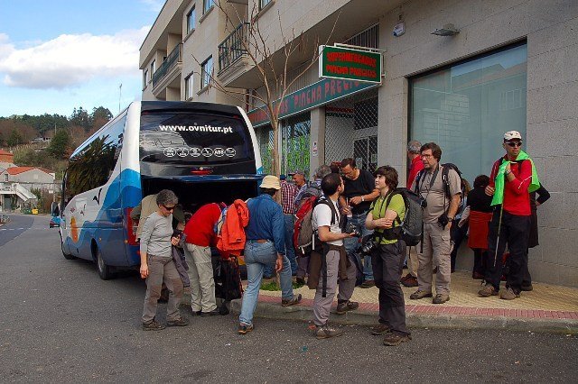 No local habitual de concentração, café Vitral, fizemo-nos à estrada, embalados pela boa disposição, sempre presente, do nosso companheiro Parente; curta paragem em Valença para café matinal e outra em Roussas, Melgaço, para acolher a companheira Augusta. Passada a ponte sobre o Trancoso, cruzamos a fronteira S. Gregório-Ponte Barxas, local de agrupamento com os companheiros do Porto e os de Melgaço/S. Cristoval.