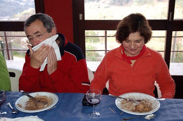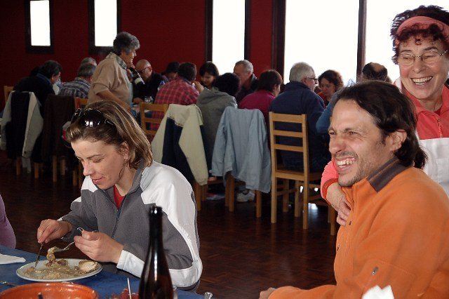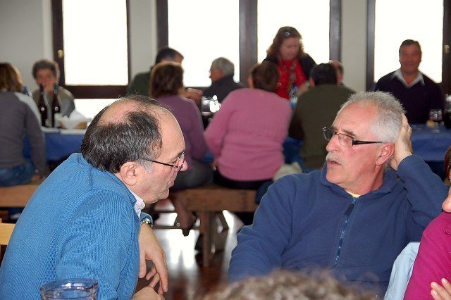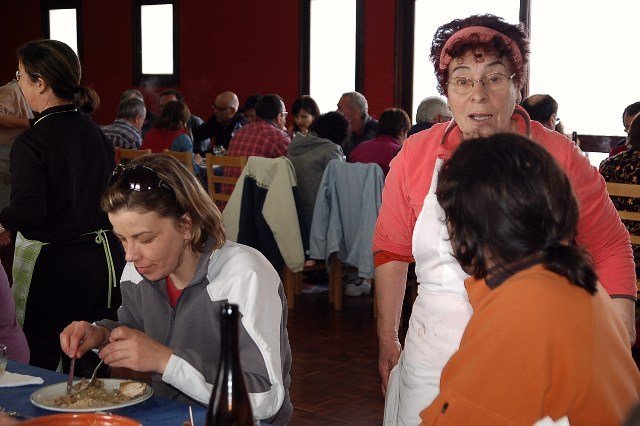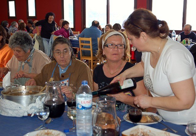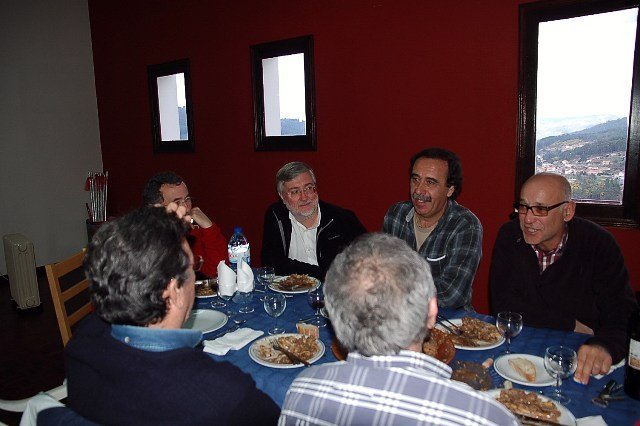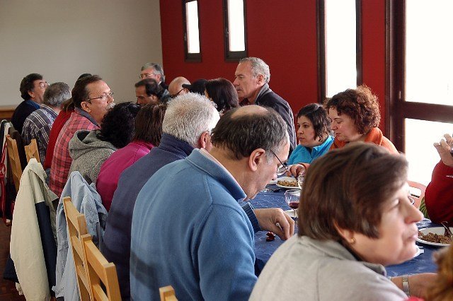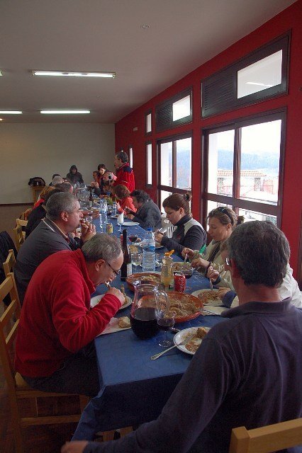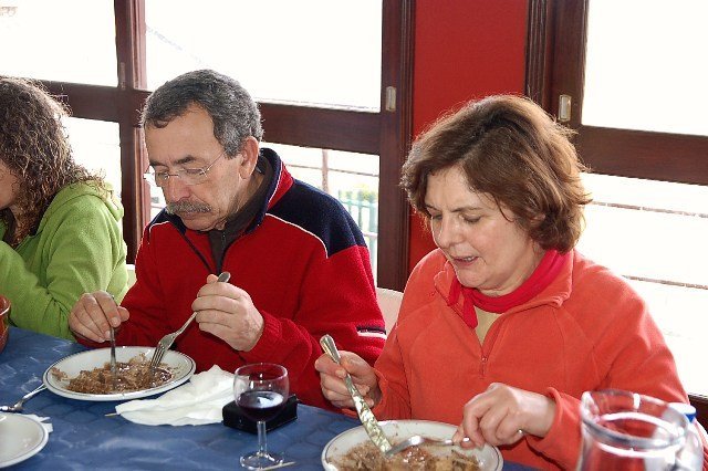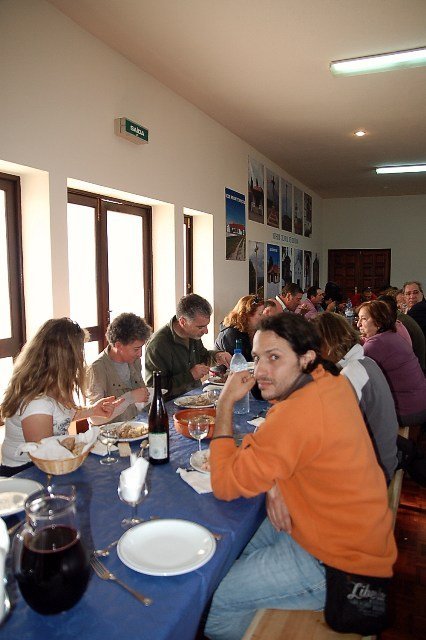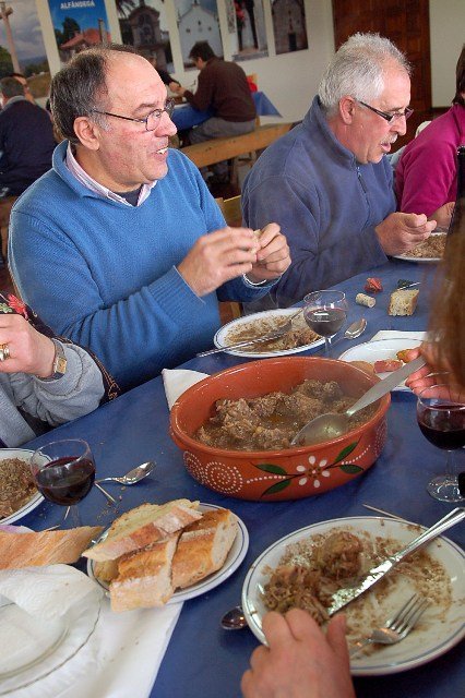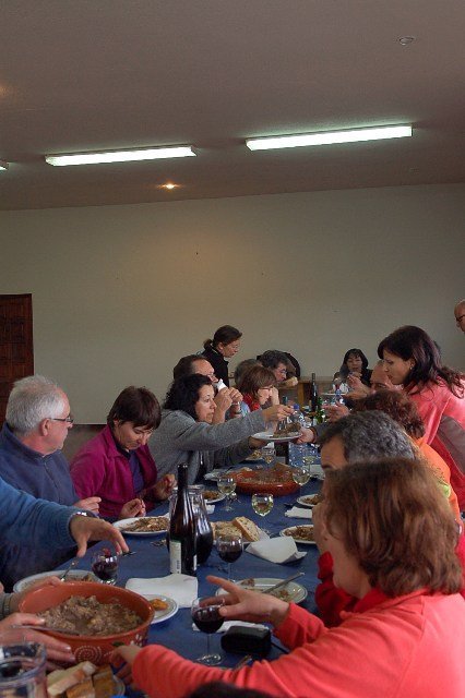 Duas grandes mesas, arroz de galo caseiro, pica no chão, delicioso, preparado pela mão experimentada e tão simpática da D. Augusta, fez as delícias de todos, que eram finalmente muitos... Faltou desta volta, para fechar com chave de ouro este dia tão profícuo, a actuação da banda Vianatrilhos; ficou contudo a promessa de se carregar concertina, cavaquinho e viola, numa próxima oportunidade... a ver vamos.