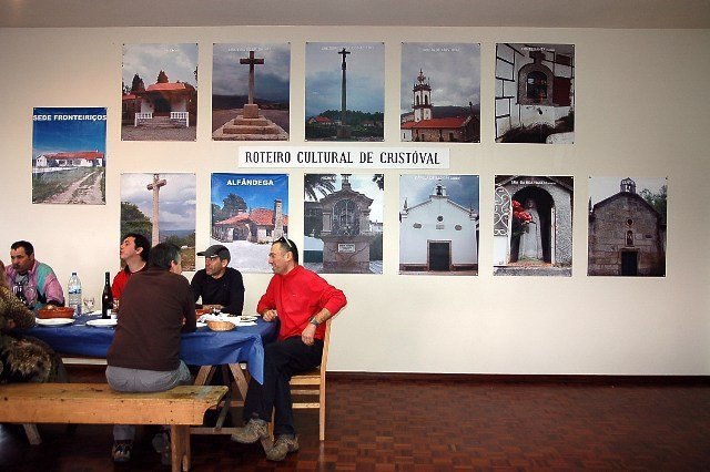 Final de tarde na sede do Grupo de Cristoval, nome de terra que sublinha e define a imemorial partilha cultural raiana, (Cristóbal...Cristóvão), edifício sobranceiro à raia, erguido pelo persistente labor de Cristovalenses mui briosos da sua terra, cabeço de terra lusa. Queremos sublinhar, emocionados, a extraordinária simpatia e muito calor com que fomos brindados pelos dirigentes/sócios da colectividade e habitantes de Cristoval, presentes neste convívio.