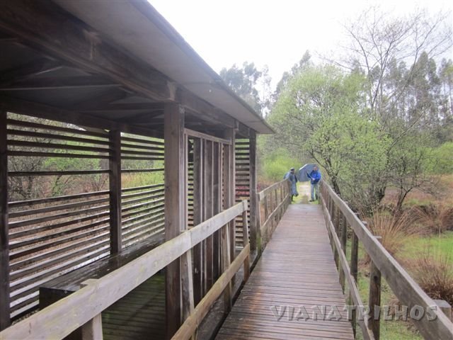 Percorremos trilhos dos vários percursos existentes, parando de quando em quando para observar as aves que aqui resolvem descansar na sua viagem migratória, cruzamos diversas pontes sobre o rio Estorãos e outras linhas de água, com destaque para a “Ponte gótica da Veiga”.