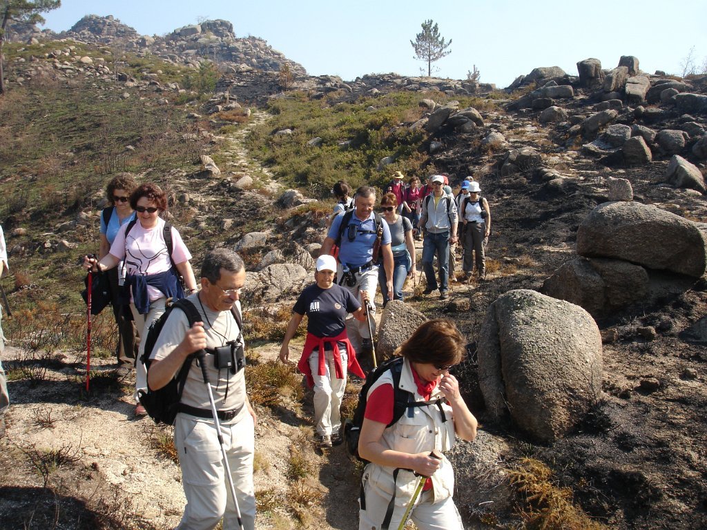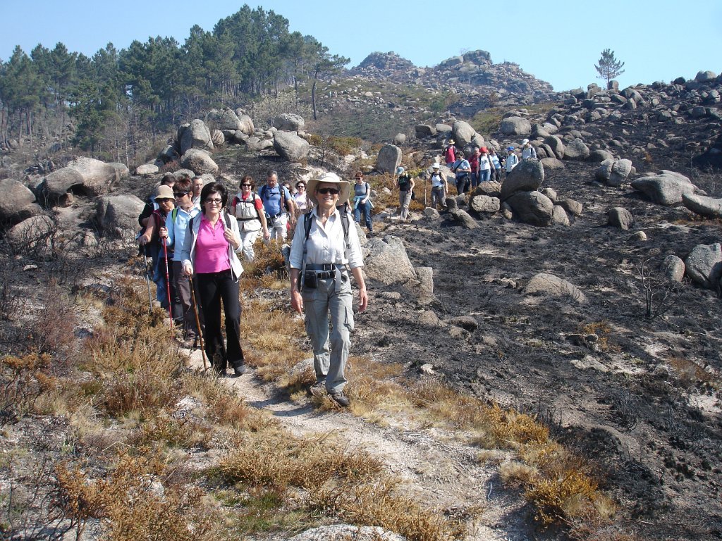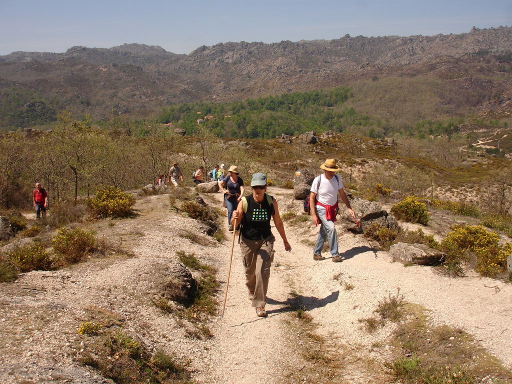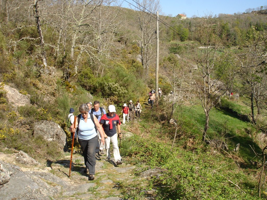 Depois dos preparativos da praxe, e acertado o “lanche”, com a brisa da manhã, iniciamos os 39 caminheiros este percurso. Aos poucos o grupo foi-se estendendo e como seria de esperar também logo que o acidentado do terreno se fez sentir, também logo qual cabra montês a companheira Louise procurou para caminhar as partes mais acidentadas.