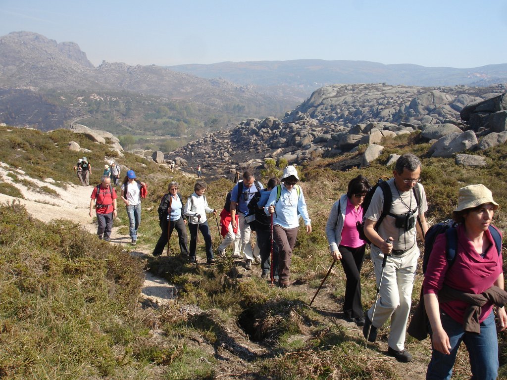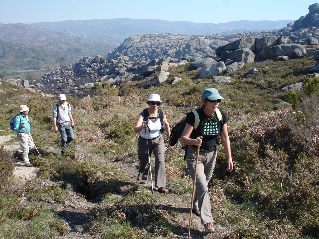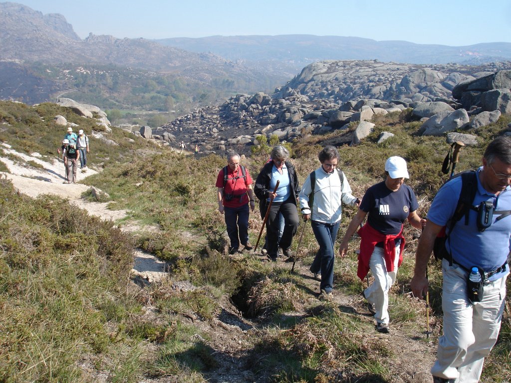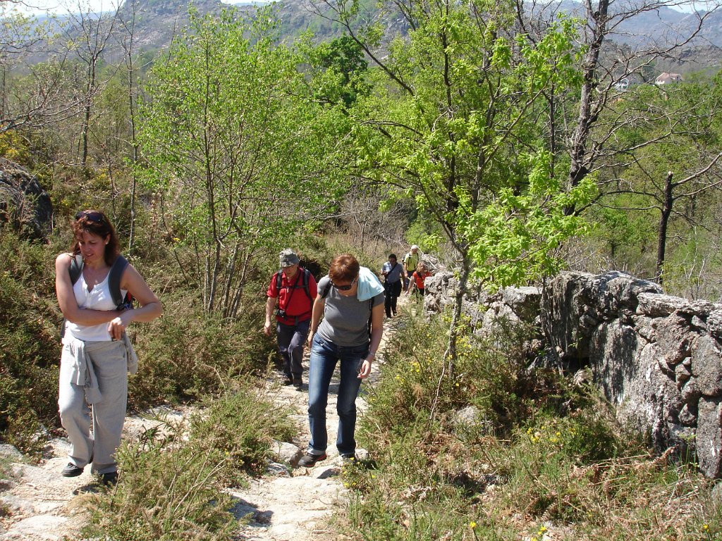 Depois dos preparativos da praxe, e acertado o “lanche”, com a brisa da manhã, iniciamos os 39 caminheiros este percurso. Aos poucos o grupo foi-se estendendo e como seria de esperar também logo que o acidentado do terreno se fez sentir, também logo qual cabra montês a companheira Louise procurou para caminhar as partes mais acidentadas.