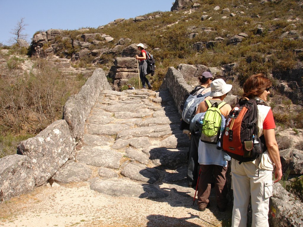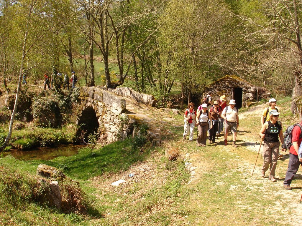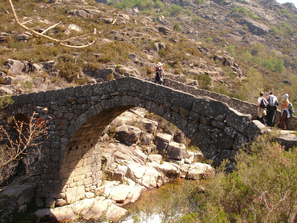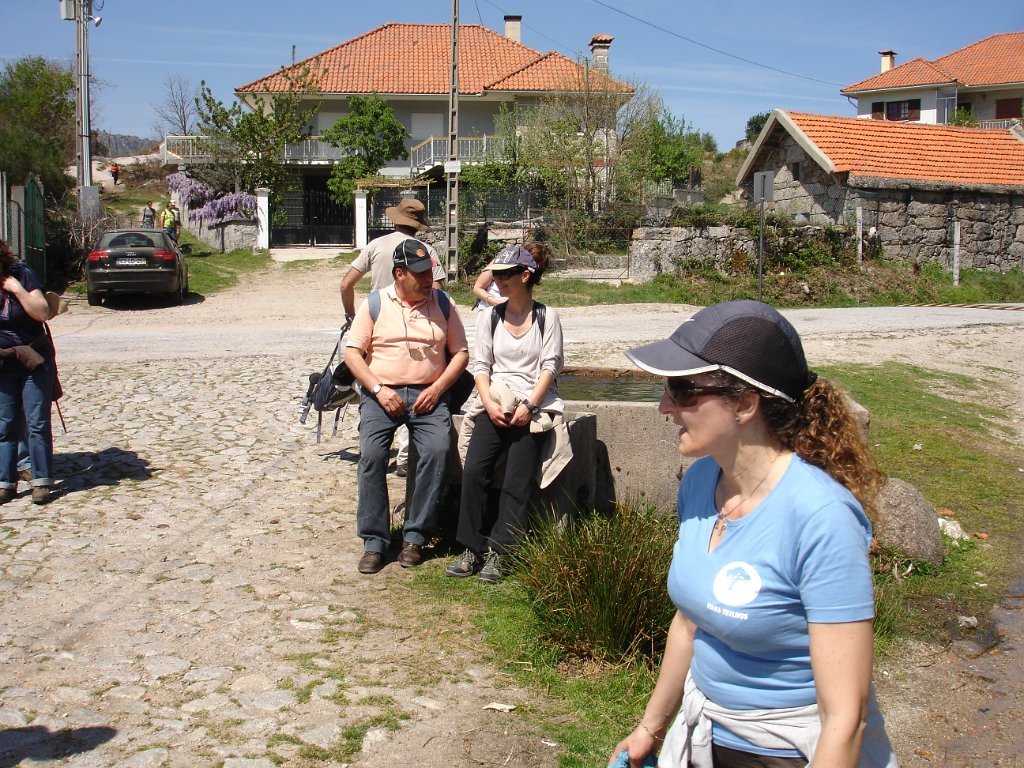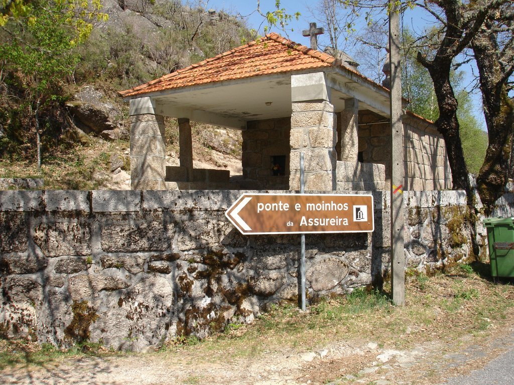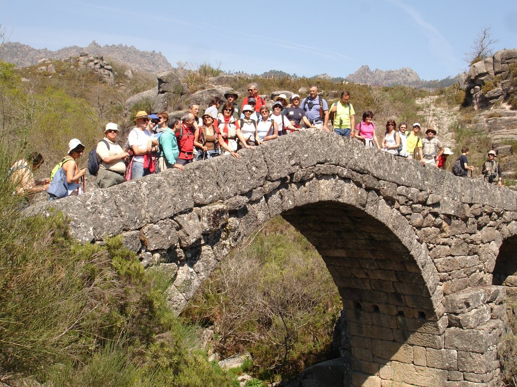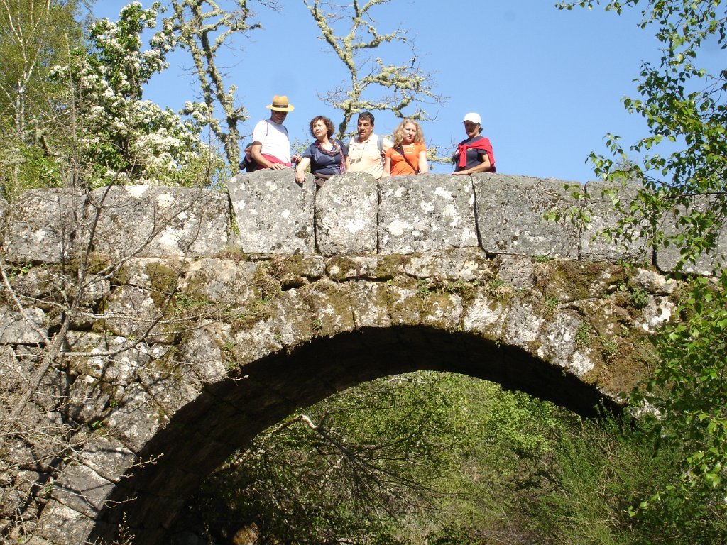 Atingido o primeiro ponto alto logo as vistas se estenderam para o fundo do vale no contraste entre os vários elementos da natureza. Após de uma descida acidentada uma presa de água da serra para regadio, foi pretexto para um registo fotográfico do grupo. Continuamos descendo entre bosque de carvalhos passando pela Inverneira de Barreiro até chegarmos á de Assureira, local onde visitamos a capela de S. Brás e a ponte de mesmo nome, e em que foi aproveitado para mais uma foto do grupo.