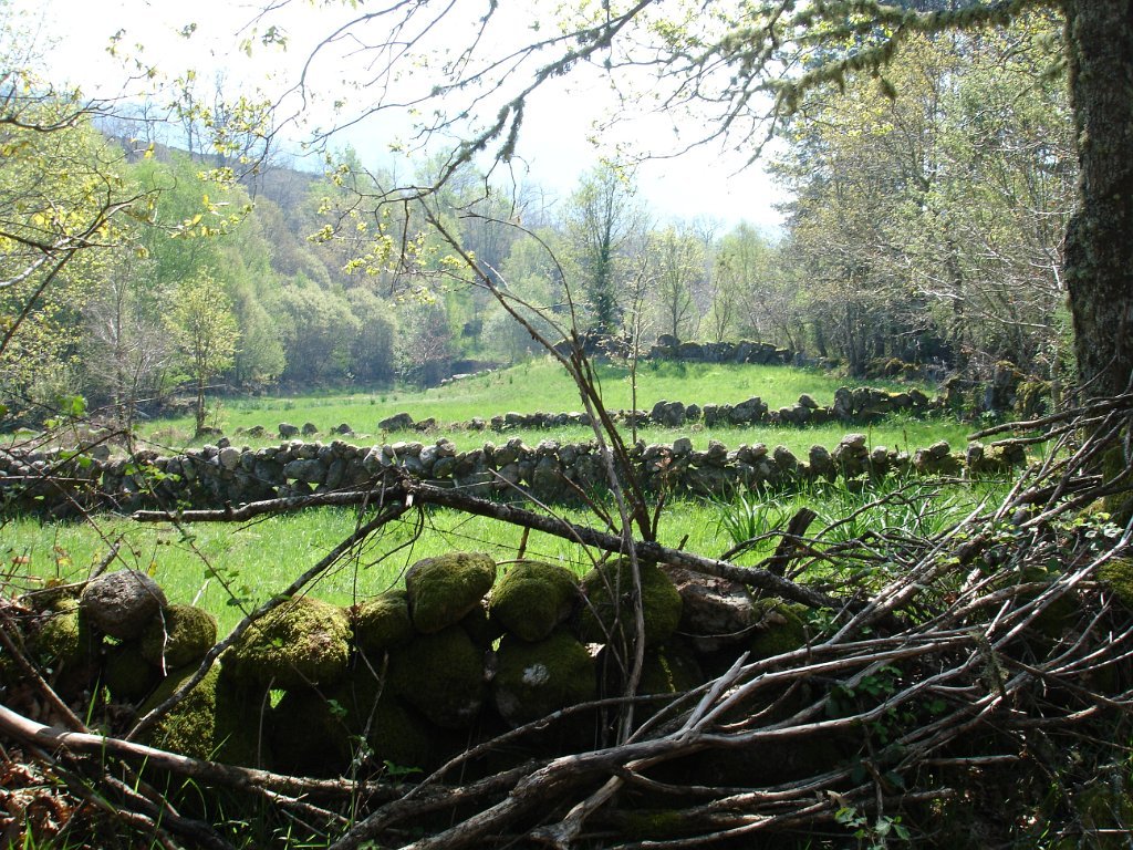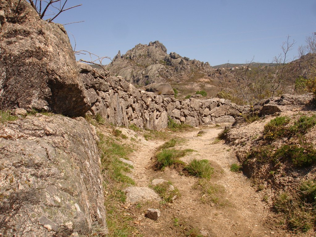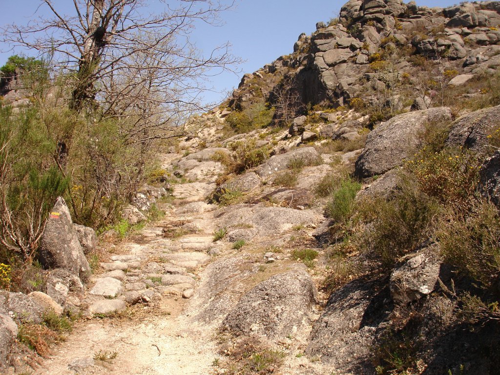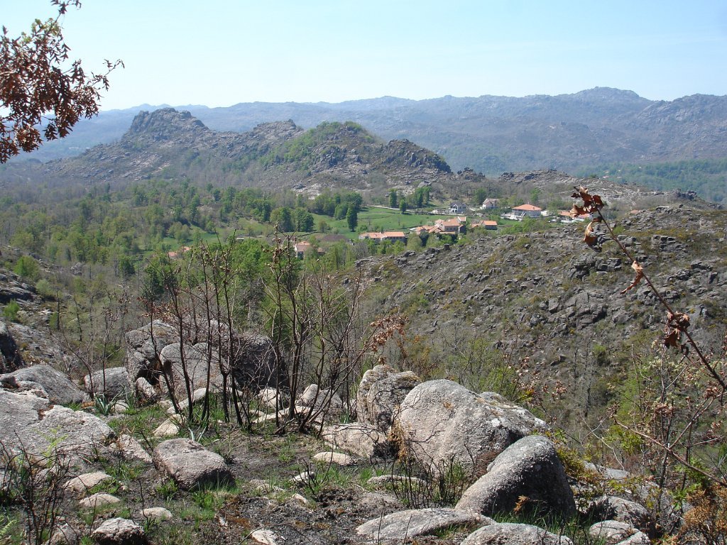 Quando se atinge o “dito” a vista espraia-se para o vale, é soberba. Descansa-se um pouco e logo temos de continuar novamente subindo através de uma mata de carvalhos, com o reino da pedra a envolver-nos, e por onde desponta em pleno de cor amarela a flor da carqueja.