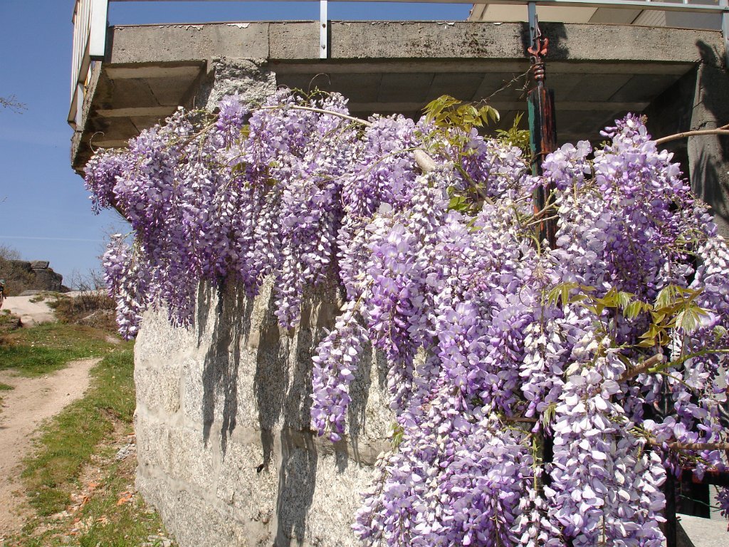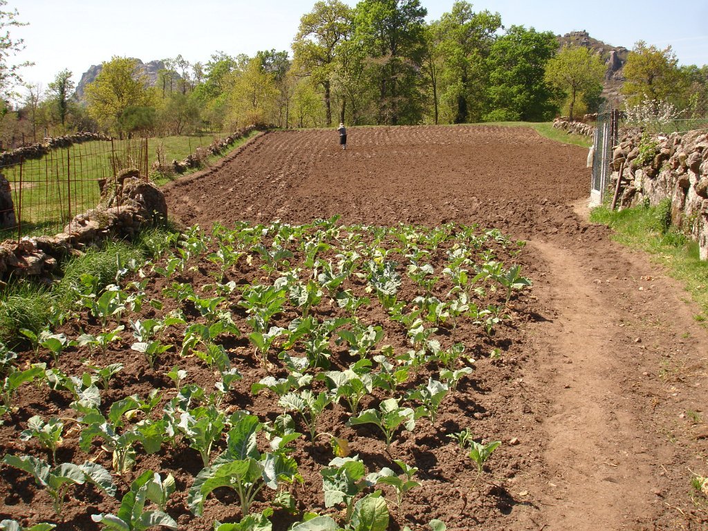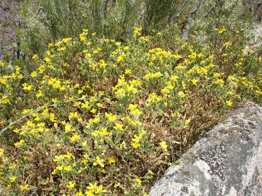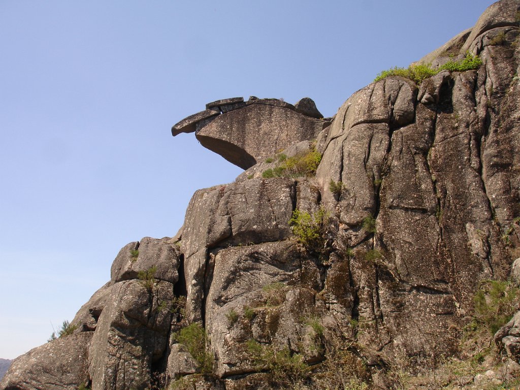Quando se atinge o “dito” a vista espraia-se para o vale, é soberba. Descansa-se um pouco e logo temos de continuar novamente subindo através de uma mata de carvalhos, com o reino da pedra a envolver-nos, e por onde desponta em pleno de cor amarela a flor da carqueja.