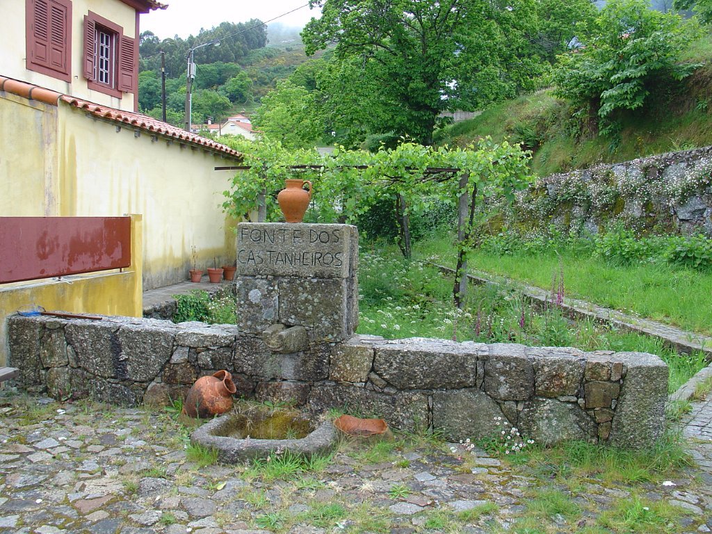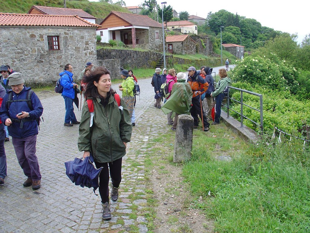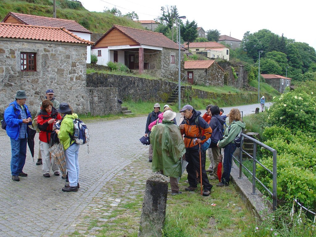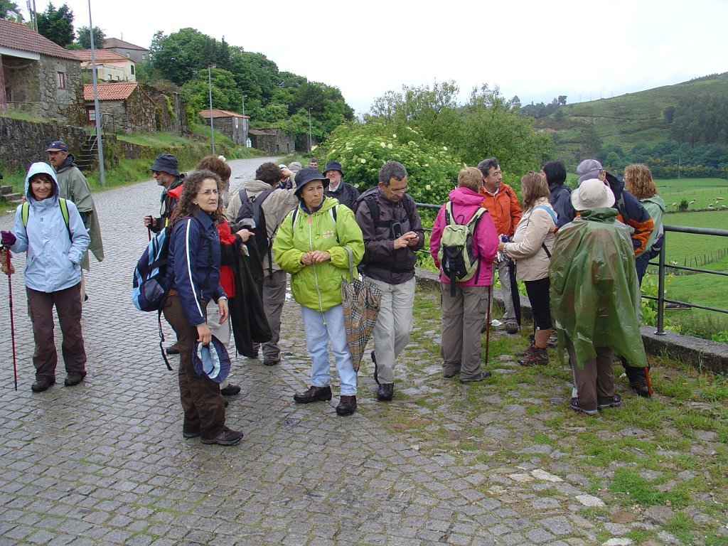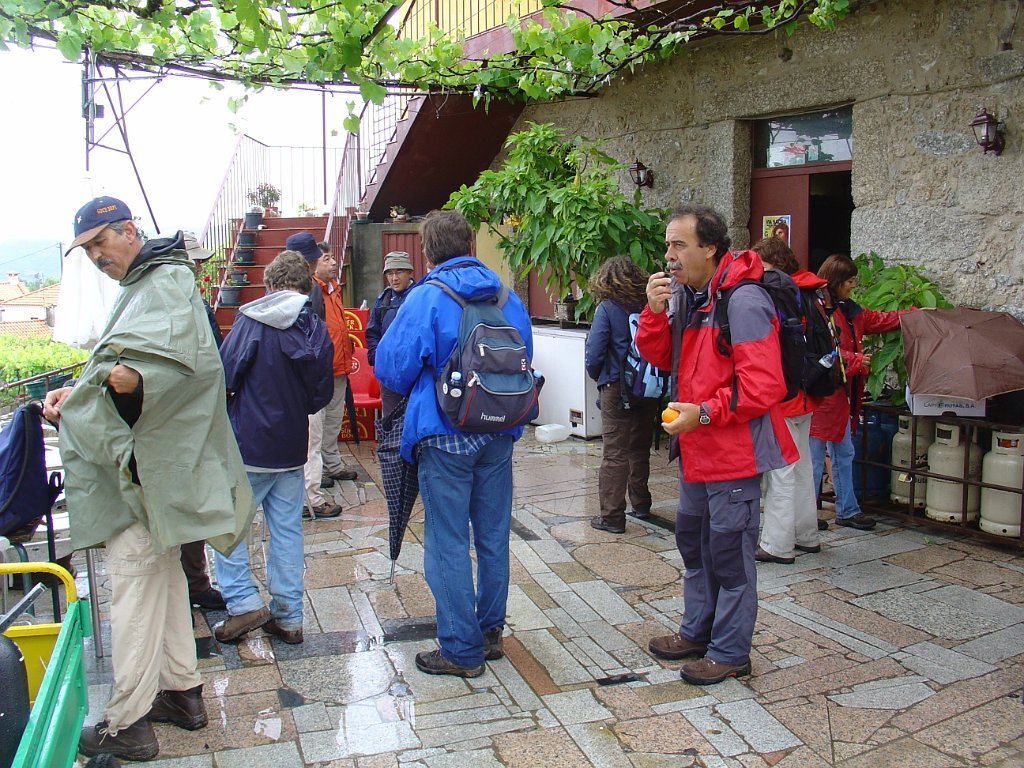 Chegados à típica aldeia de Vilar do Monte, passamos junto da Fonte dos Castanheiros, aproveitamos uma breve réstia de sol, para fazer a tradicional foto de grupo, refugiando-nos de seguida no café Martinho, já que o tempo inclemente voltou a fechar, escapando por pouco a nova chuvada, que nos obrigou a uma demorada pausa forçada.