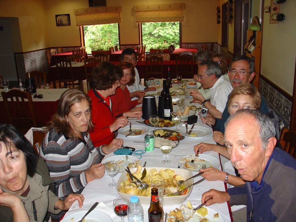 Mas o término efectivo foi na Pombinha, em Brandara, em que depois de uma espera dolorosa para os estômagos, colados às costas, acabamos por retemperar as forças com um bacalhau e sarrabulho, bem regado com um loureiro de estalo, que acompanhou e reforçou estes momentos de convívio, sempre animados.