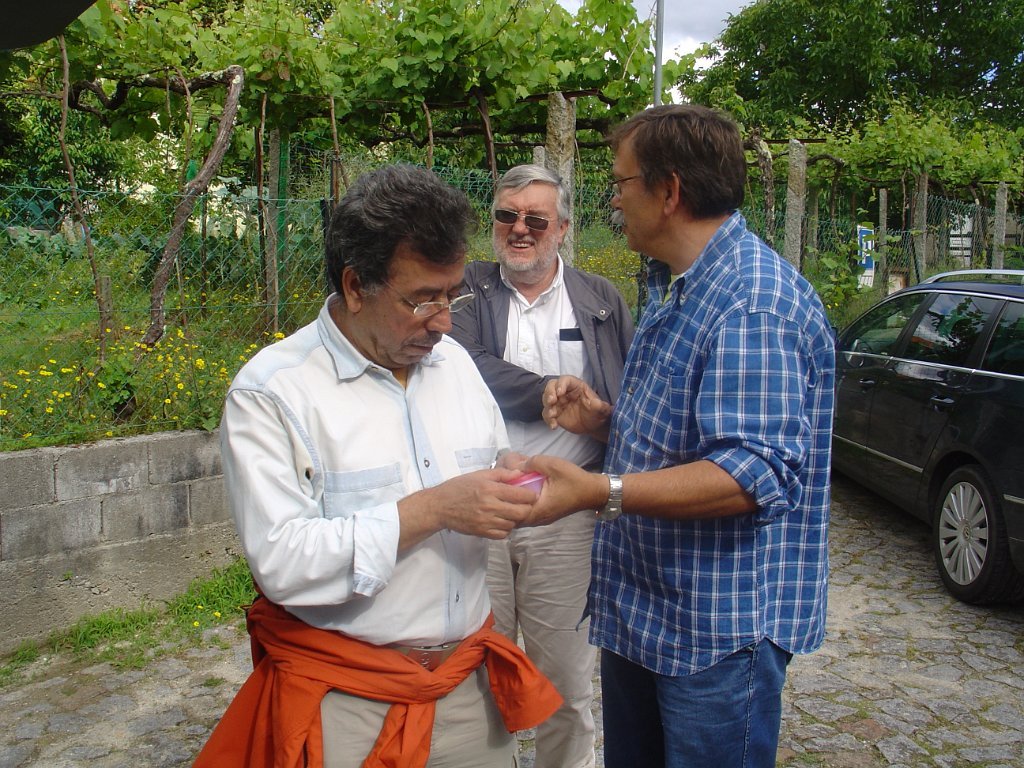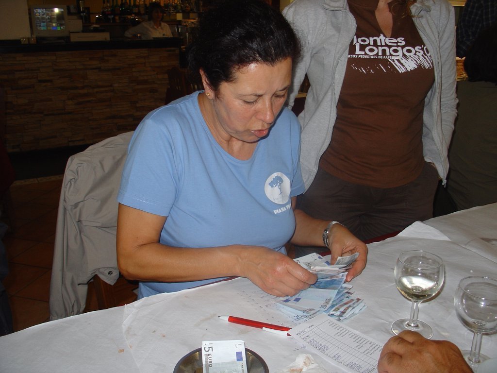 No fim, antes das despedidas, as contas... em que a Manuela cumpriu a missão de tesoureira com afinco, seguindo-se a aposição de crachás pelo Mesquita, a quem os não tinha, com destaque para as companheiras de Ponte de Lima e para a Louise.