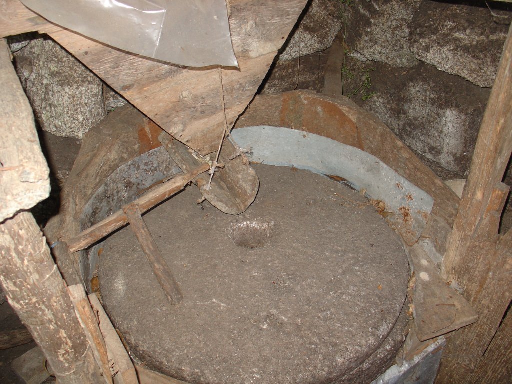 Aqui a paisagem mudou completamente e houve que trepar por entre os moinhos, quase dependurados um sobre os outros, aproveitando para apreciar as suas “artes”, algumas em bastante bom estado, quase parecendo paradas no tempo e prontas a entrar em função.