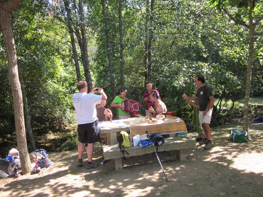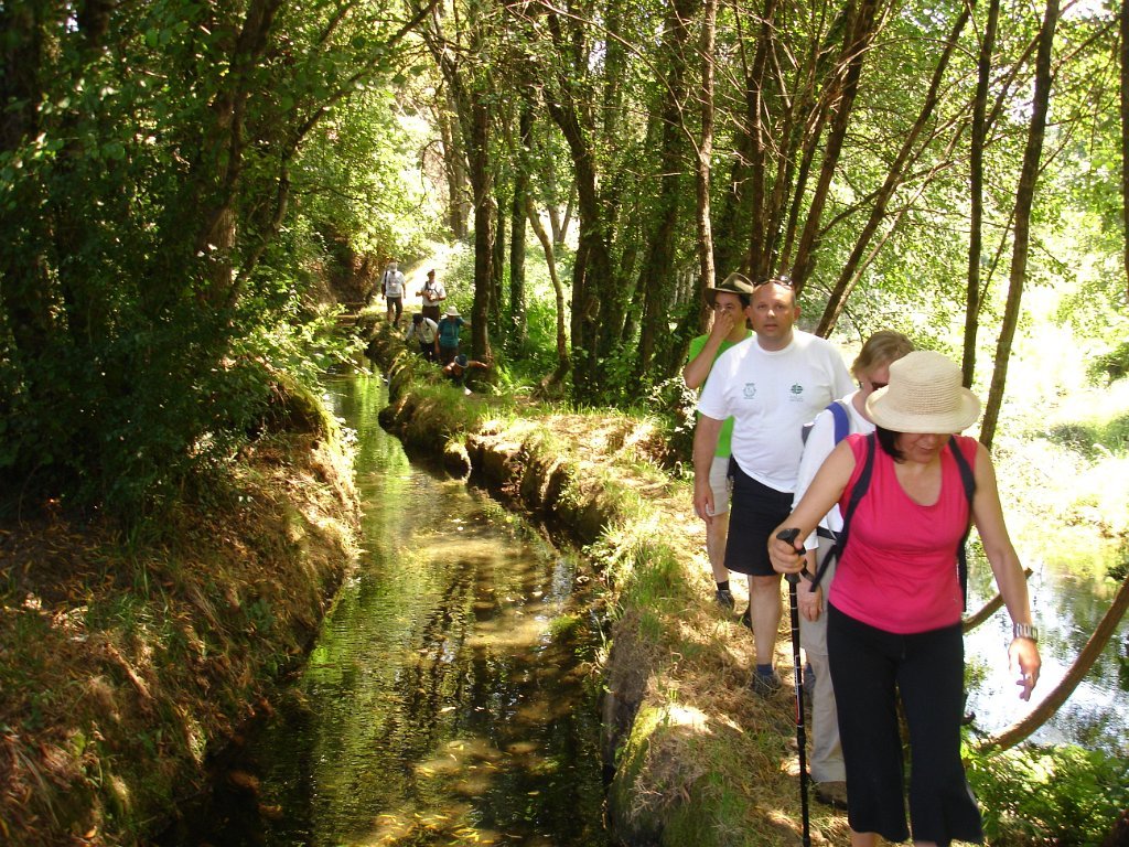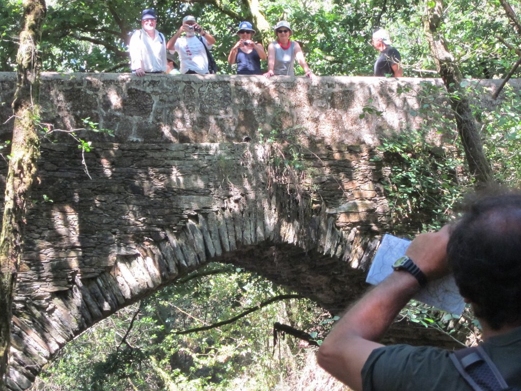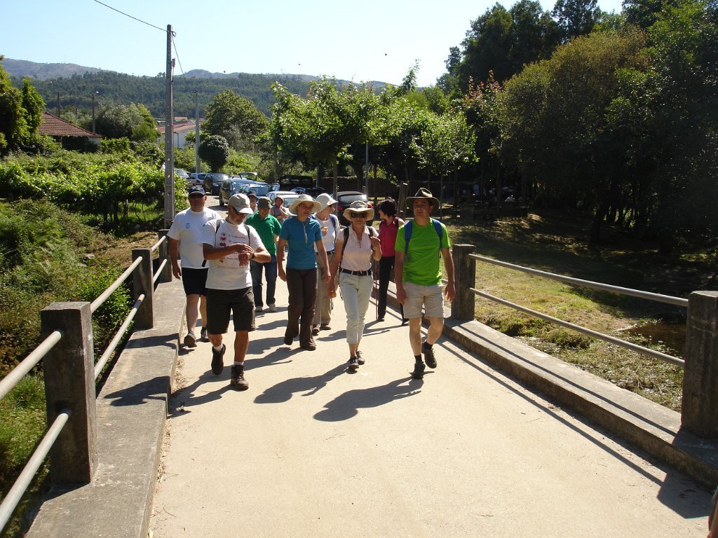 Acompanha-mos o rio na sua descida até á Ponte de Saim, local onde derivamos para o ribeiro de Amonde que fomos subindo até á castiça Ponte Nova no lugar das Oliveiras também em Orbacém. Depois foi o caminhar desfrutando todo o panorama da beleza desta freguesia passando pela sua igreja Paroquial, Lugar do Calvário, Casas de Roma, para de seguida cruzarmos a vau o rio Âncora com o seu caudal próprio desta época, e atingirmos um pouco mais á frente a Ponte Romana de Tourim, Via Romana de Antonino, e que em épocas já distantes serviu de palco para os célebres “Baptizados da Meia Noite”. Aqui foi tirada uma das fotos do grupo, após a qual caminhando sobre a calçada romana acompanhando o rio atingirmos o local do pic-nic, onde se fazia sentir já o cheiro do carvão nos assadores.