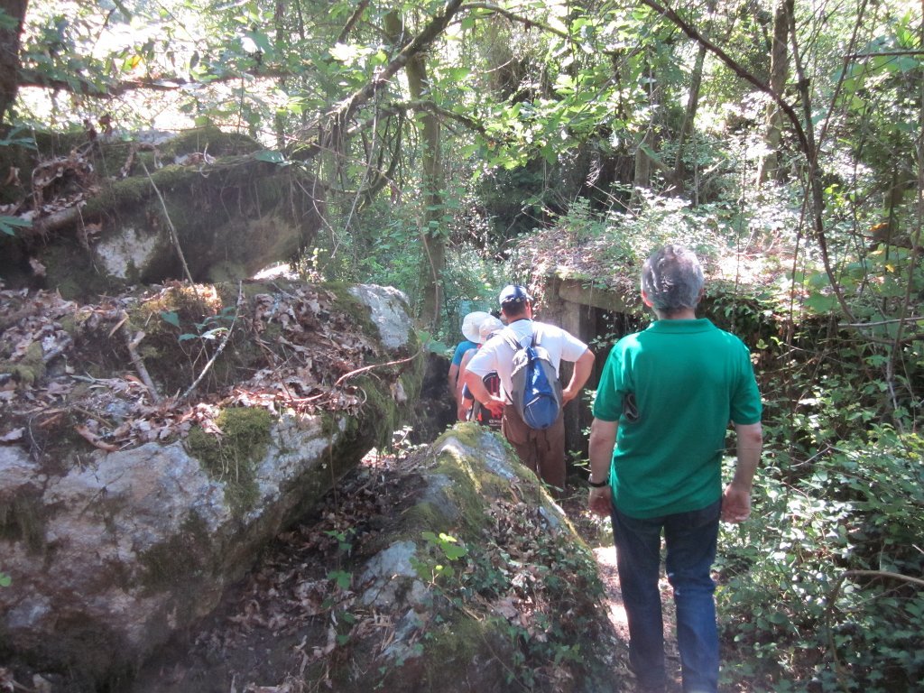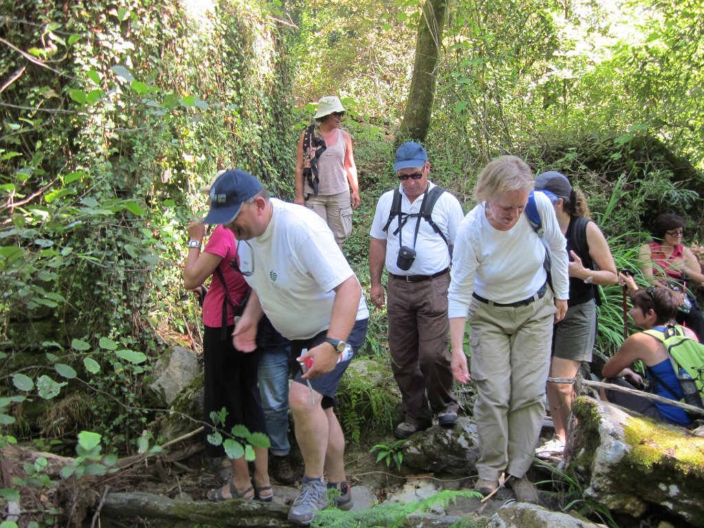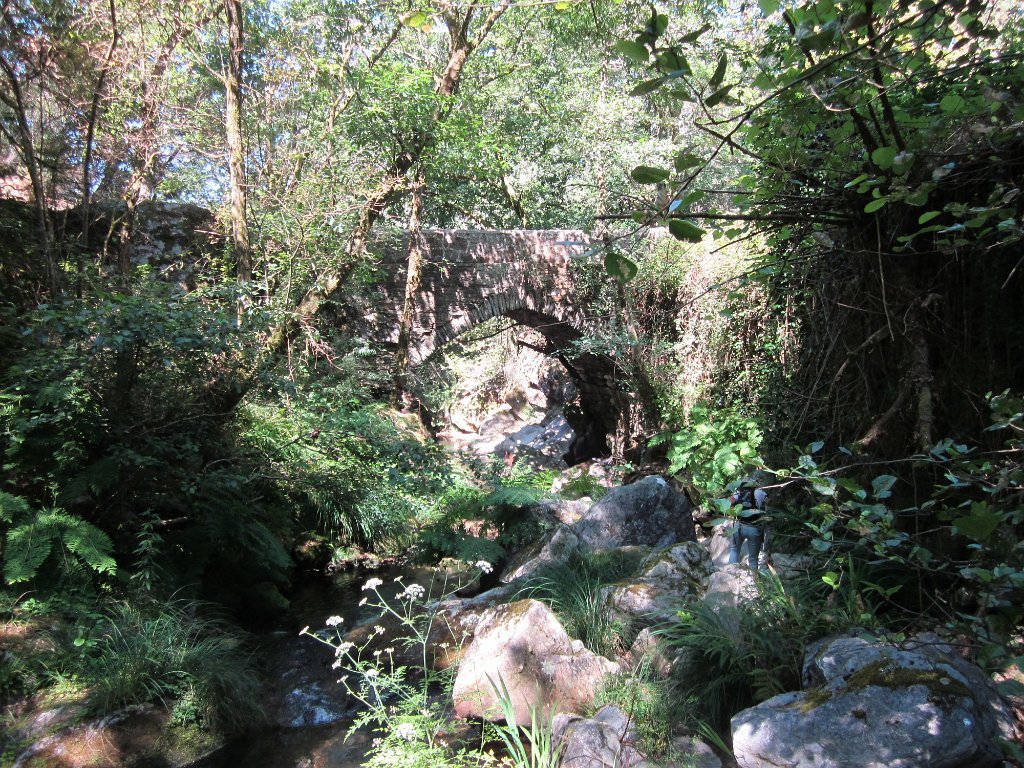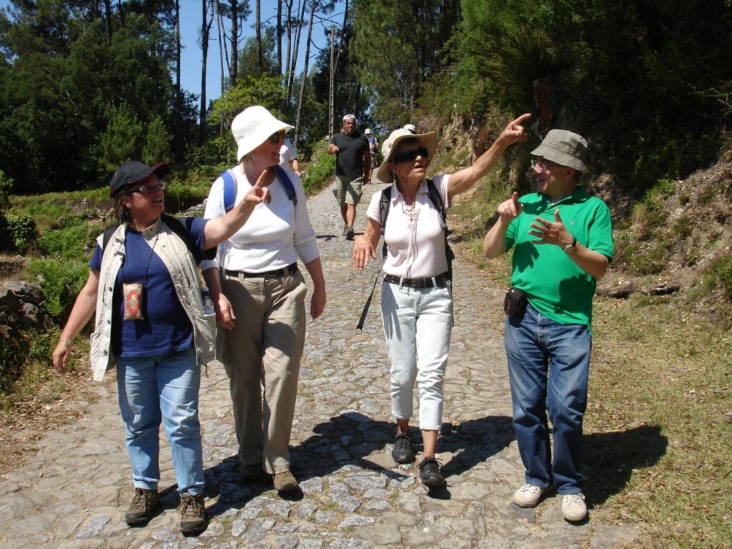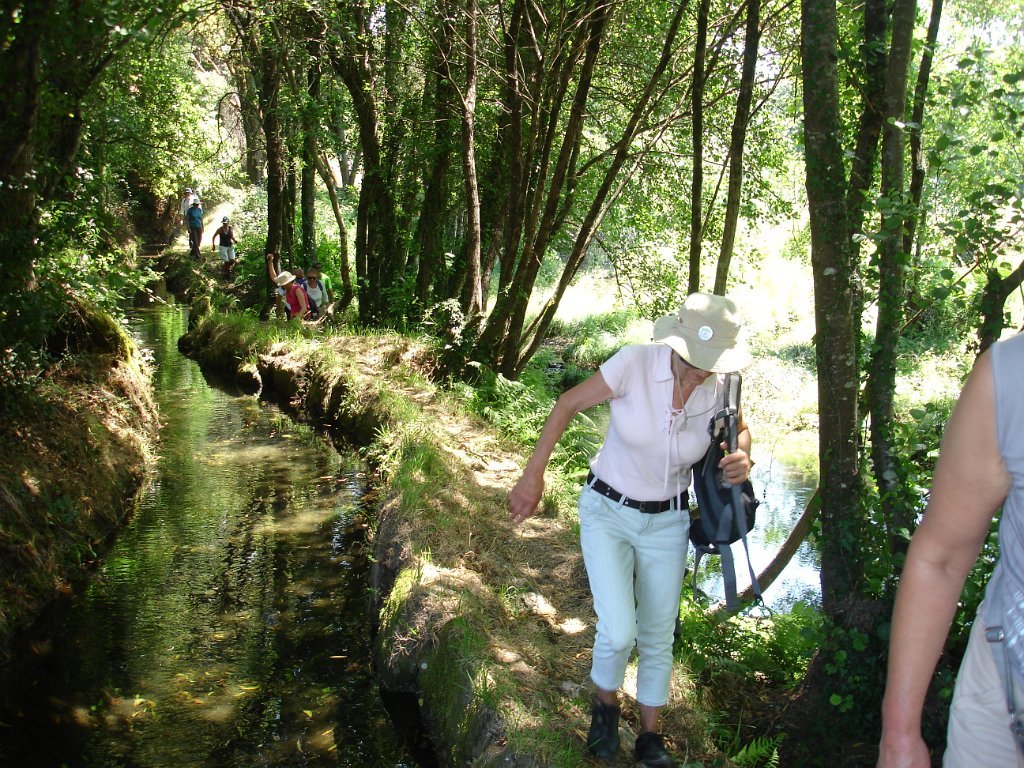Acompanha-mos o rio na sua descida até á Ponte de Saim, local onde derivamos para o ribeiro de Amonde que fomos subindo até á castiça Ponte Nova no lugar das Oliveiras também em Orbacém. Depois foi o caminhar desfrutando todo o panorama da beleza desta freguesia passando pela sua igreja Paroquial, Lugar do Calvário, Casas de Roma, para de seguida cruzarmos a vau o rio Âncora com o seu caudal próprio desta época, e atingirmos um pouco mais á frente a Ponte Romana de Tourim, Via Romana de Antonino, e que em épocas já distantes serviu de palco para os célebres “Baptizados da Meia Noite”. Aqui foi tirada uma das fotos do grupo, após a qual caminhando sobre a calçada romana acompanhando o rio atingirmos o local do pic-nic, onde se fazia sentir já o cheiro do carvão nos assadores.