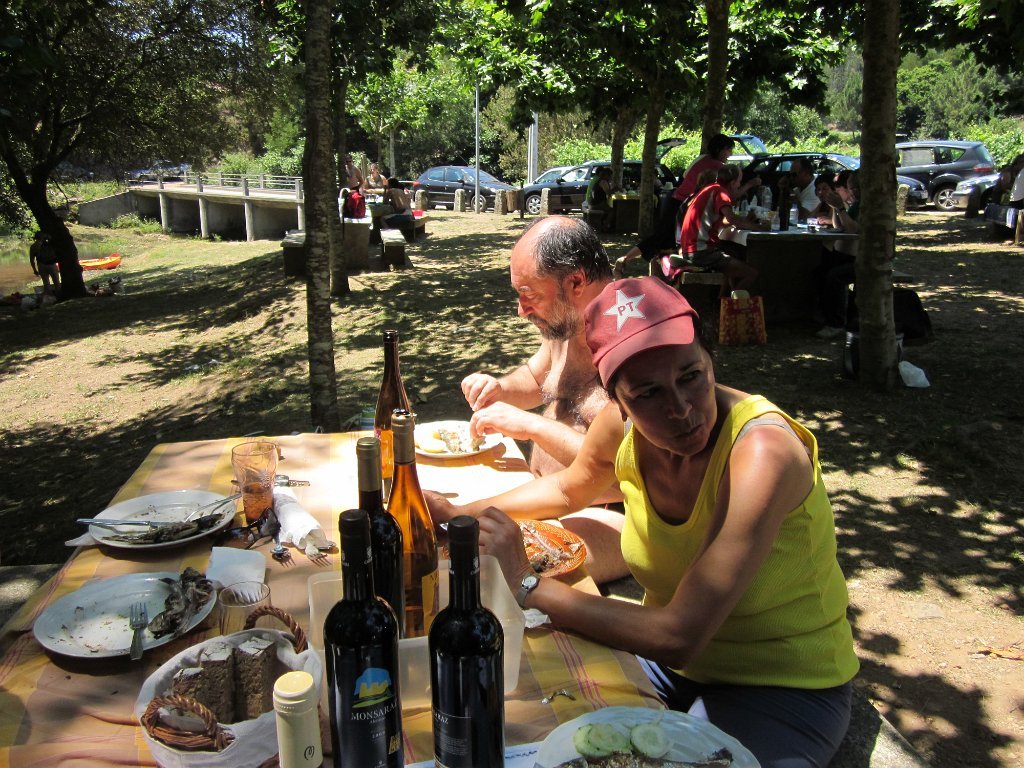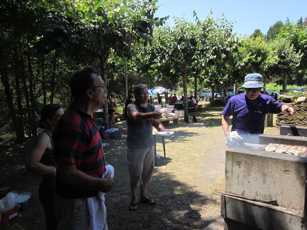 Faz-se o controlo verifica-se que ninguém falta, a carne já está no carro de x, as sardinhas já as foi buscar à peixaria a Y, e a boroa já a leva o Z. Com cerca de meia hora de atraso lá fomos rumo ao local da actividade, no parque de merendas de Cancela na freguesia de Orbacém, mesmo na margem do rio Âncora.